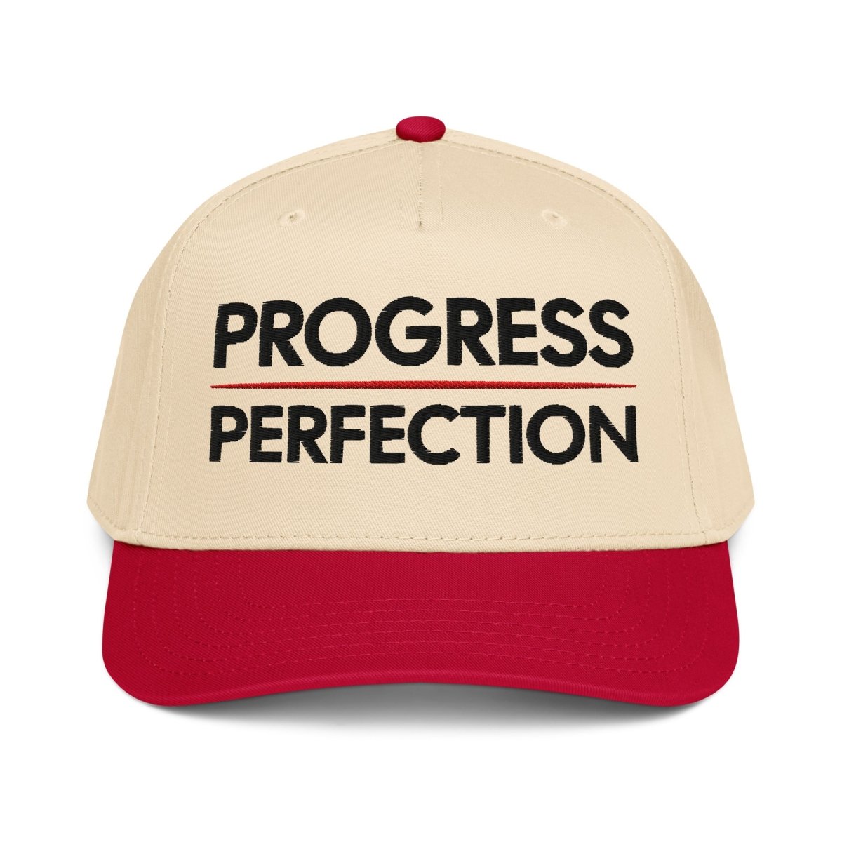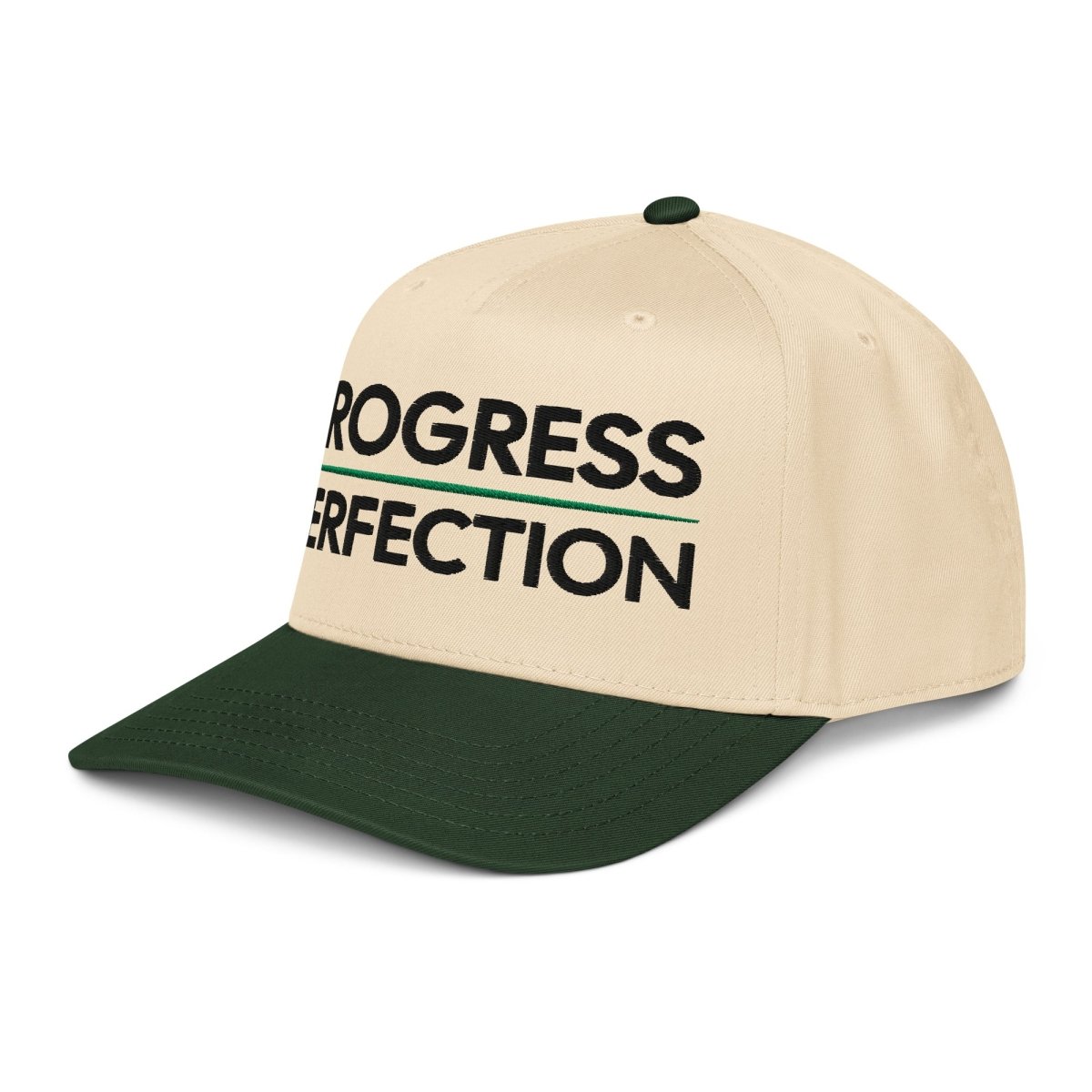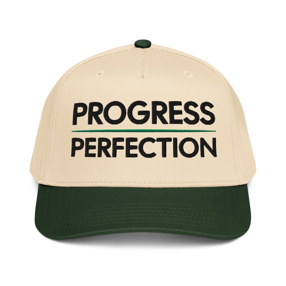 Progress Over Perfection 5-Panel Mid-Profile Baseball Cap – Embroidered Recovery Mindset Hat