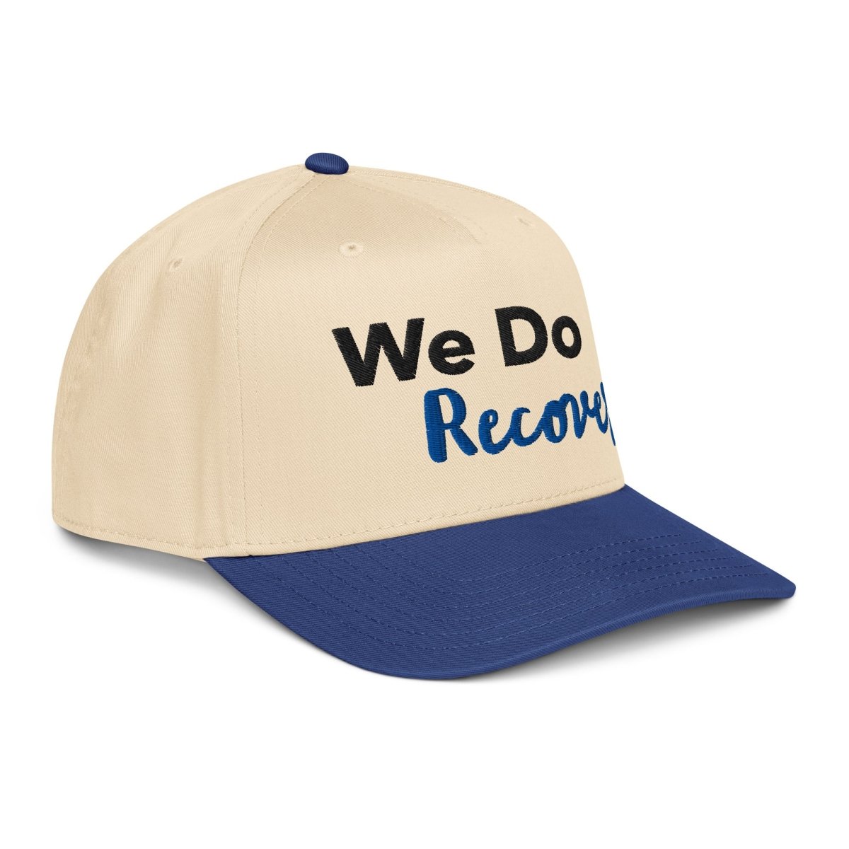 We Do Recover 5 - Panel Mid - Profile Baseball Cap – Embroidered Recovery Hat - Royal/Natural 5 Panel Mid Profile Baseball Cap - Sobervation