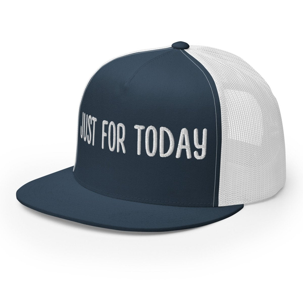 Just For Today Trucker Cap – Breathable Style, Powerful Message - Navy/ White 5 Panel Trucker Hat - Sobervation
