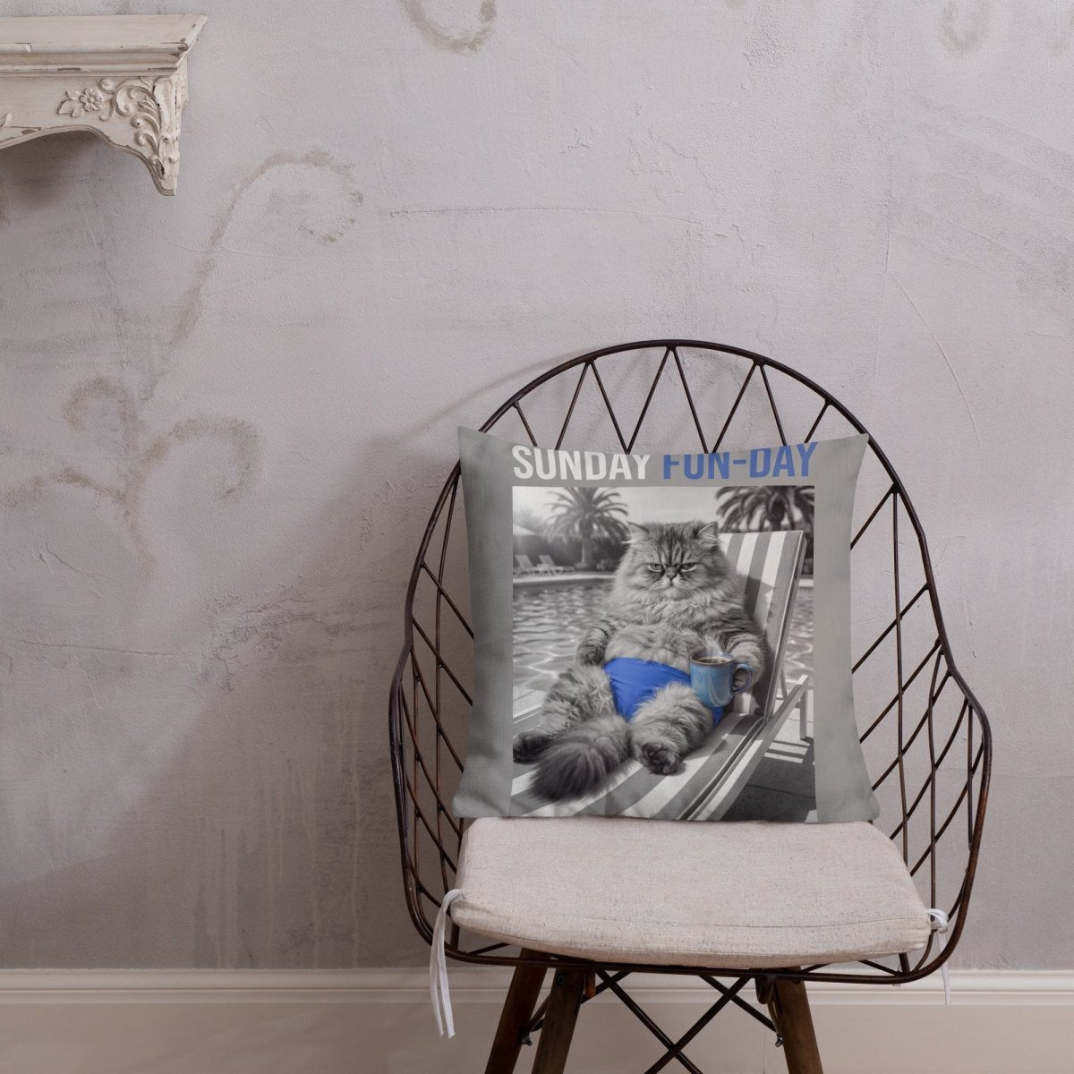 Sunday Fun Day - Poolside Coffee Cat Premium Pillow