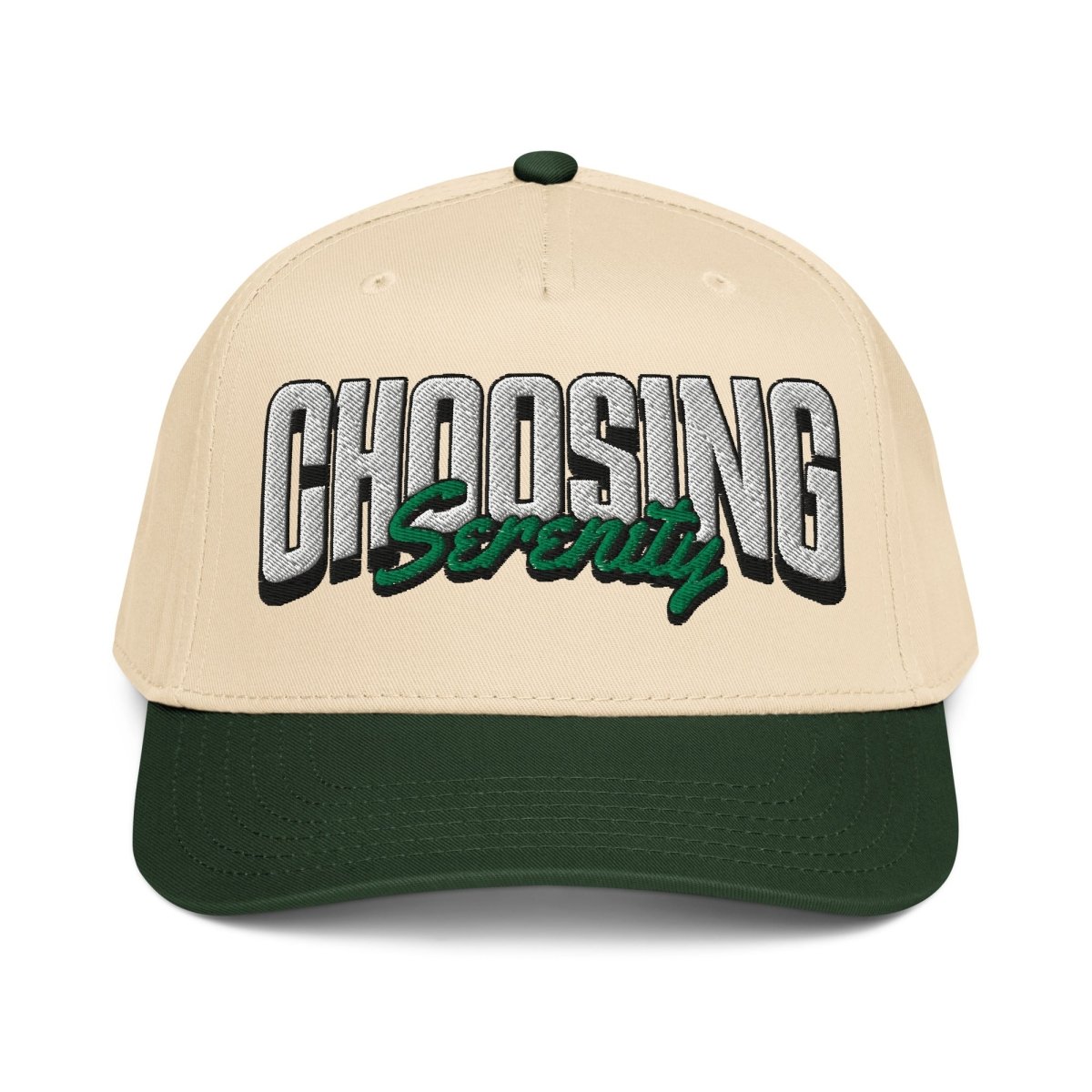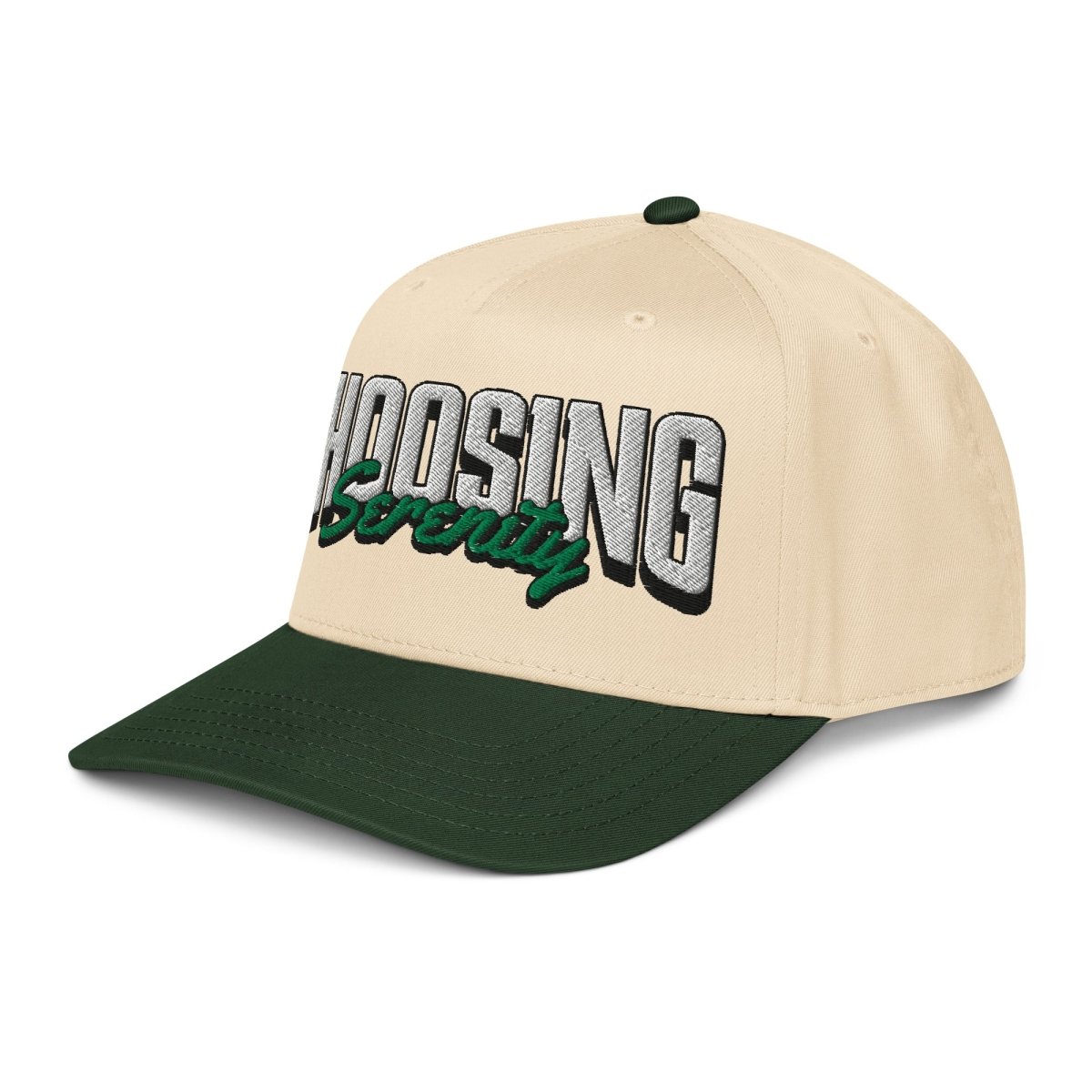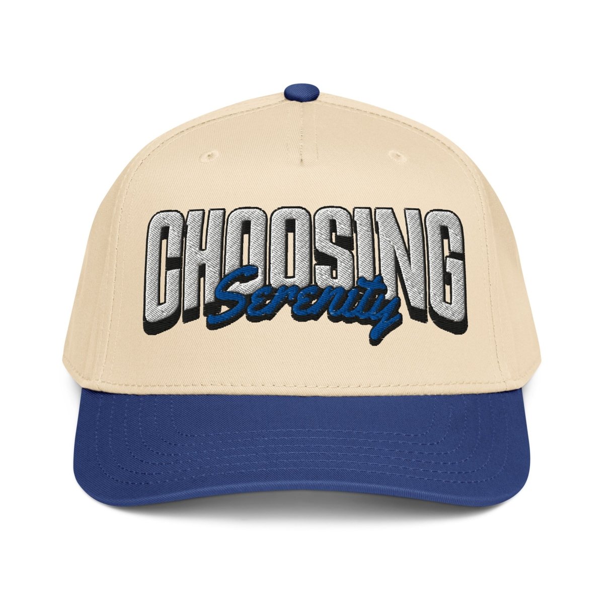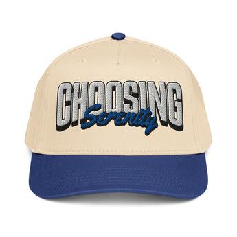 The Choosing Serenity 5-panel cap is a clean, classic way to wear your commitment to calm, clarity, and recovery. Featuring bold 3D puff embroidery and a vintage-inspired navy and cream colorway, this hat reminds you (and shows the world) that serenity is something you choose on purpose—every single day.