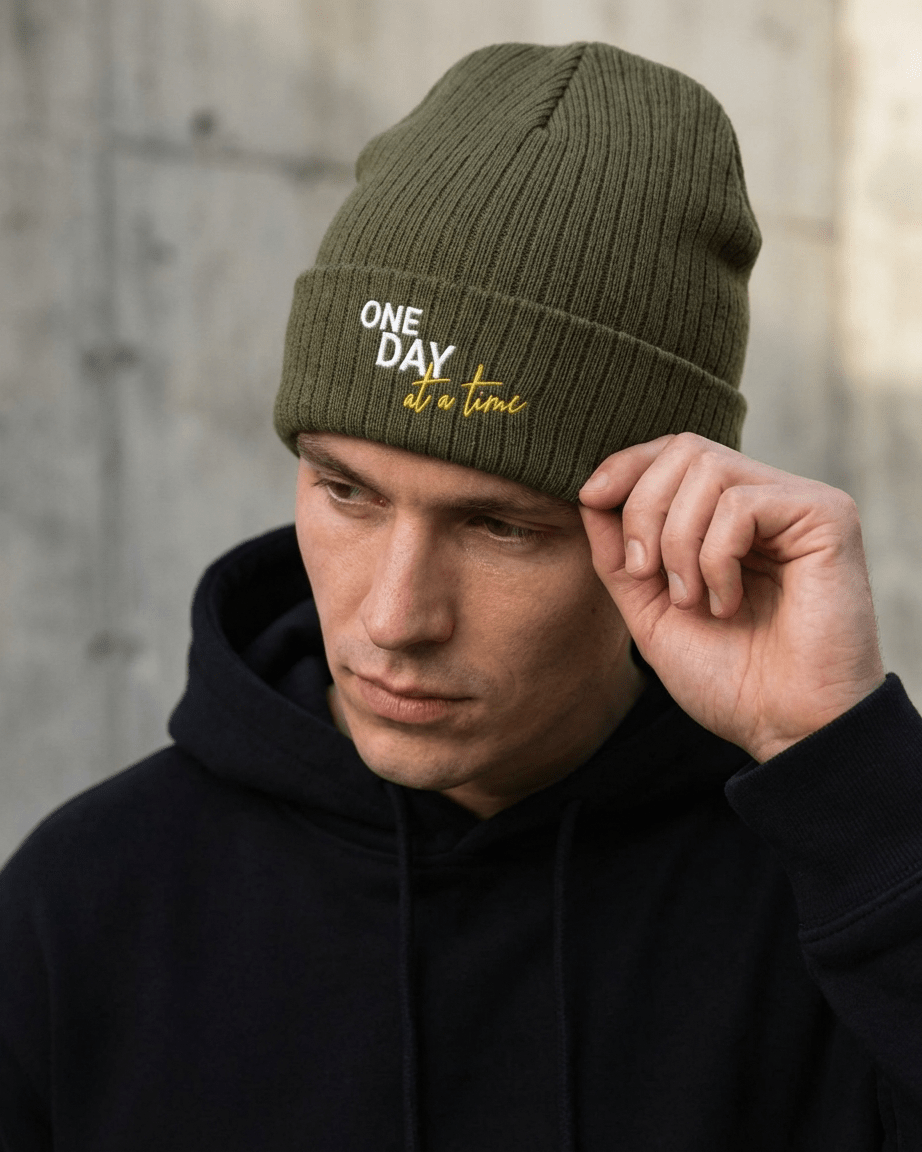 The One Day at a Time Sustainable Ribbed Knit Beanie is a powerful reminder that recovery is a journey, not a destination. Featuring white and yellow embroidery on eco-friendly ribbed knit fabric, this premium beanie combines warmth, style, and meaningful symbolism for those who embrace the present moment and celebrate small, consistent steps forward.