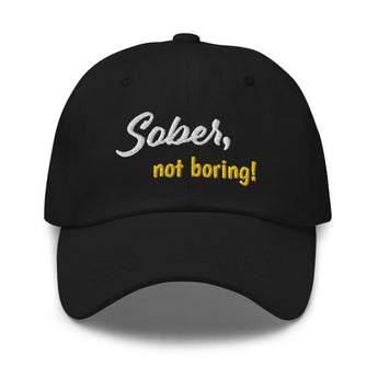 Sober, Not Boring! - Embroidered Dad Hat | Recovery Headwear - Black | Sobervation