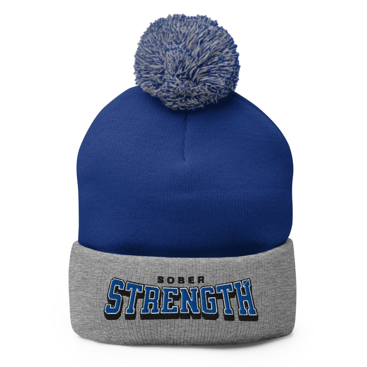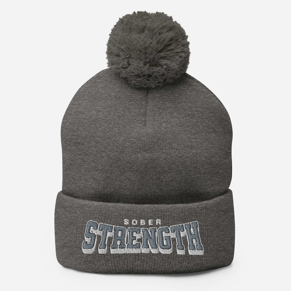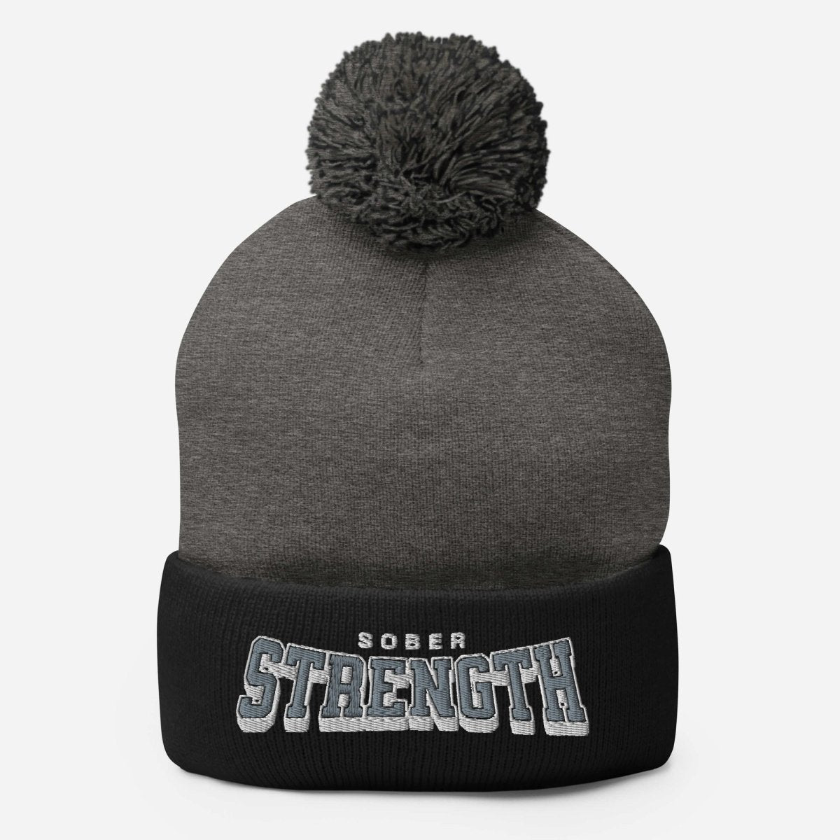 The Sober Strength pom-pom beanie brings the heat with bold varsity-style puff embroidery and a cozy, color-blocked design in red and charcoal. Whether you're navigating recovery, finding your footing, or just staying true to your sober path, this beanie is a badge of honor for the strength you carry within.