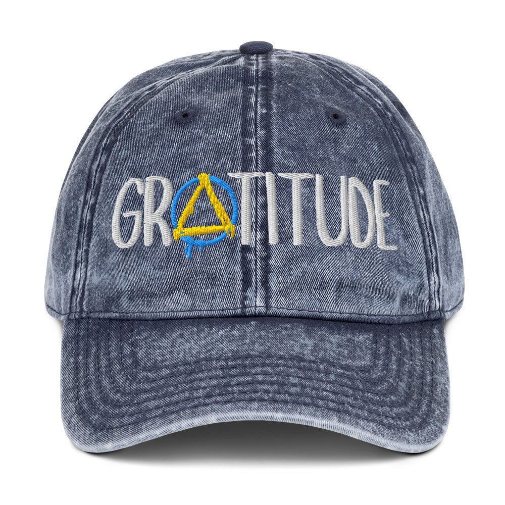 GRATITUDE Vintage Cotton Twill Cap – Distressed Style, Timeless Message - Navy Vintage Cotton Twill Cap - Sobervation