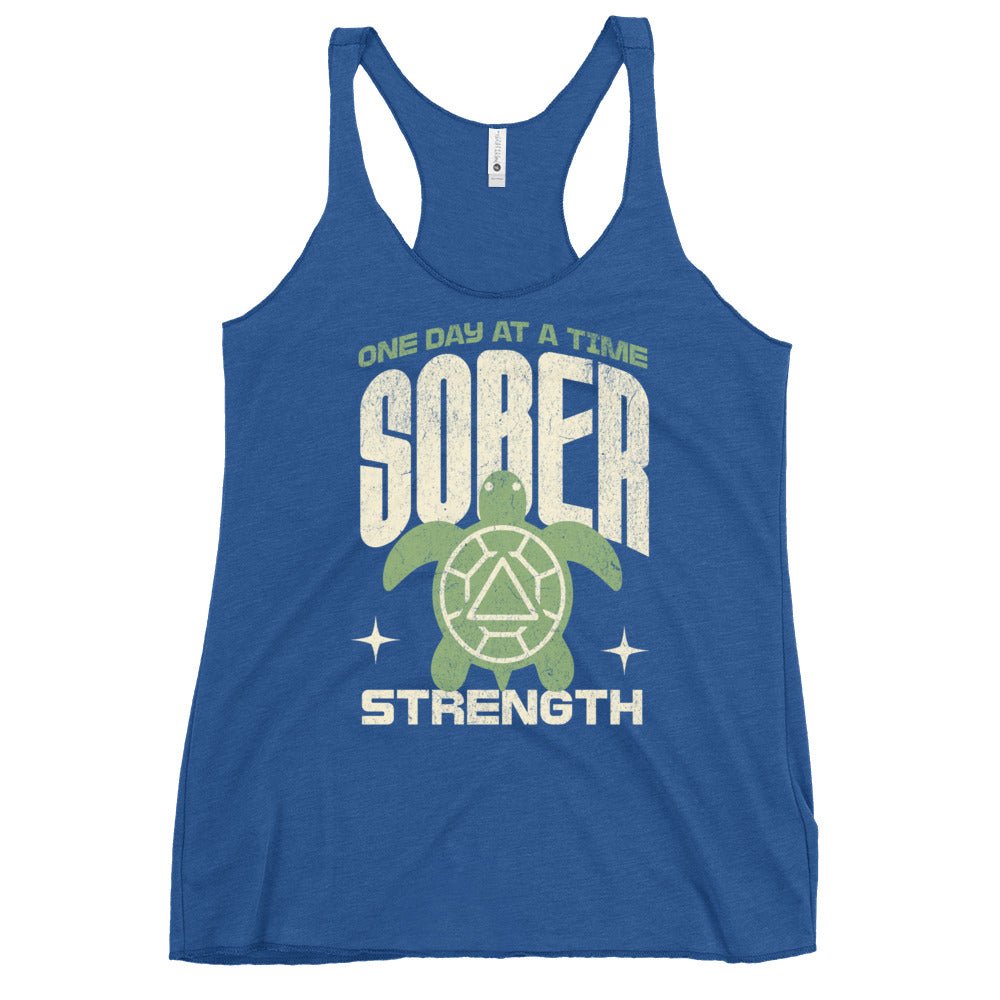 Sober Strength Women’s Racerback Tank – Recovery Turtle - Vintage Royal Racerback Tank - Sobervation