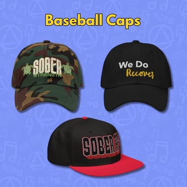 Our Baseball Caps collection combines everyday comfort with intentional expression. Featuring structured snapbacks and relaxed dad hats—both in embroidered and printed styles—these caps are built to last and made to speak. Whether you’re keeping it casual or showing up bold, every hat is a reminder of strength, growth, and the sober journey you're proud to wear.