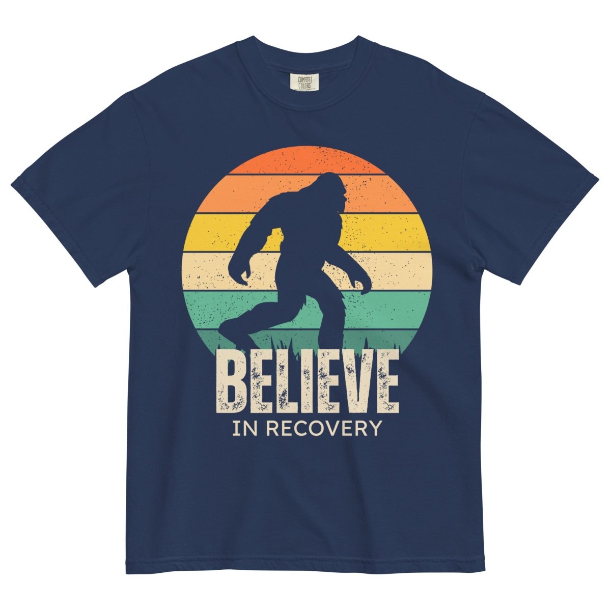 Believe in Recovery – Heavyweight Tee - True Navy Graphic Print T Shirt - Sobervation