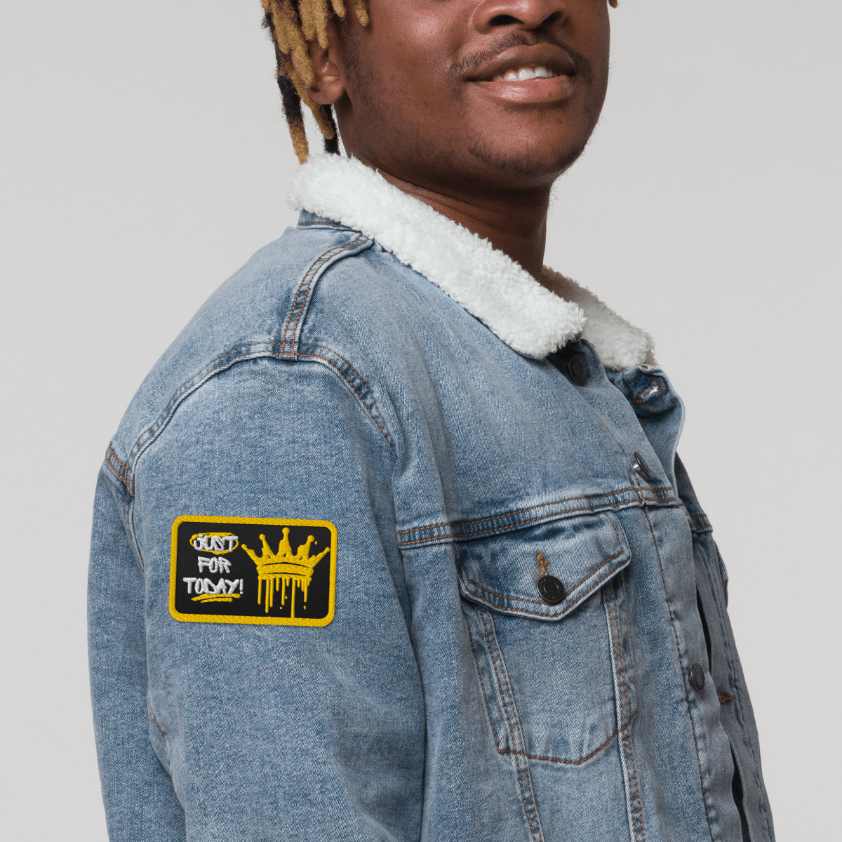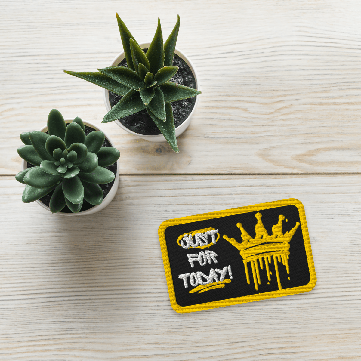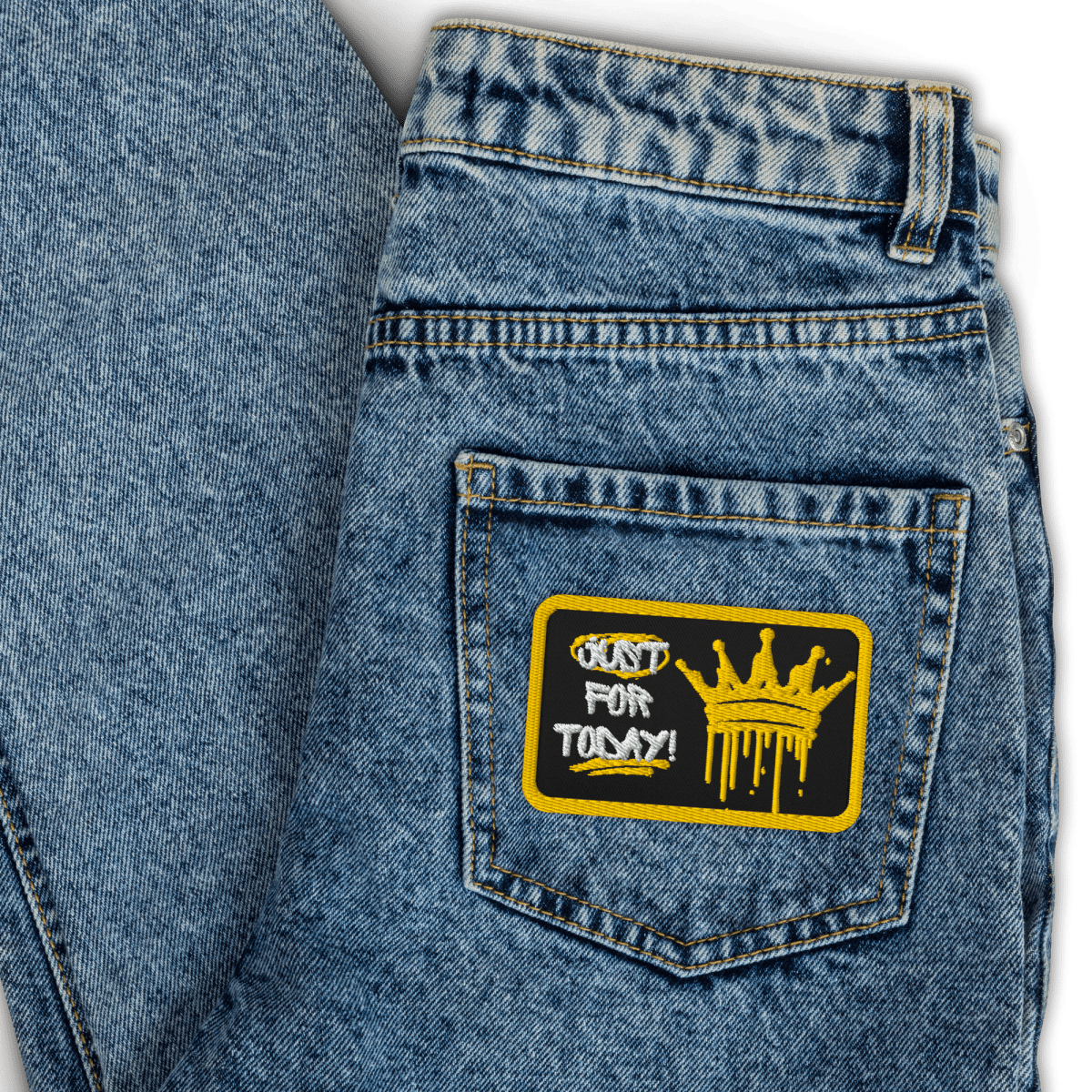 Just for Today Crown Embroidered Patch - Graffiti Style Iron-On Sew-On Pin