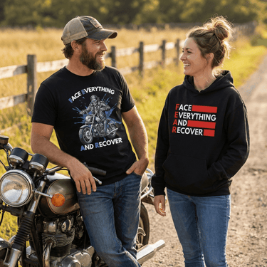 The F.E.A.R. Collection is a bold statement for those on the path of recovery and personal growth. Inspired by the powerful acronym Face Everything And Recover, these garments are designed to remind you—and the world—what it means to live with courage.