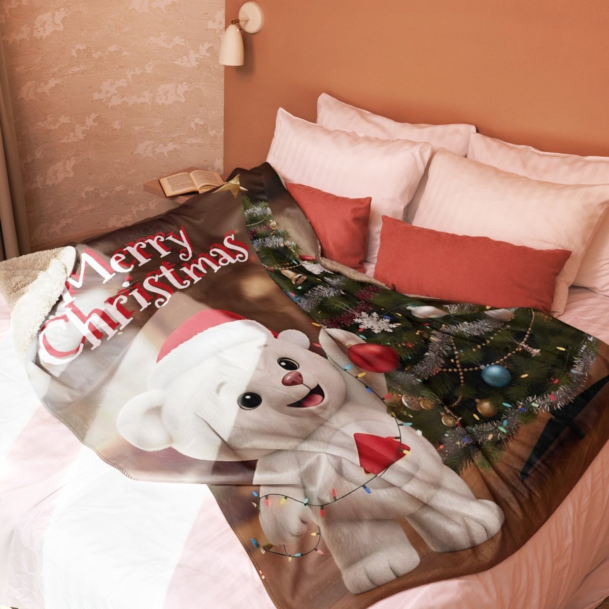 Serenity Cub Sherpa Blanket – Cozy Christmas Comfort in Sobriety