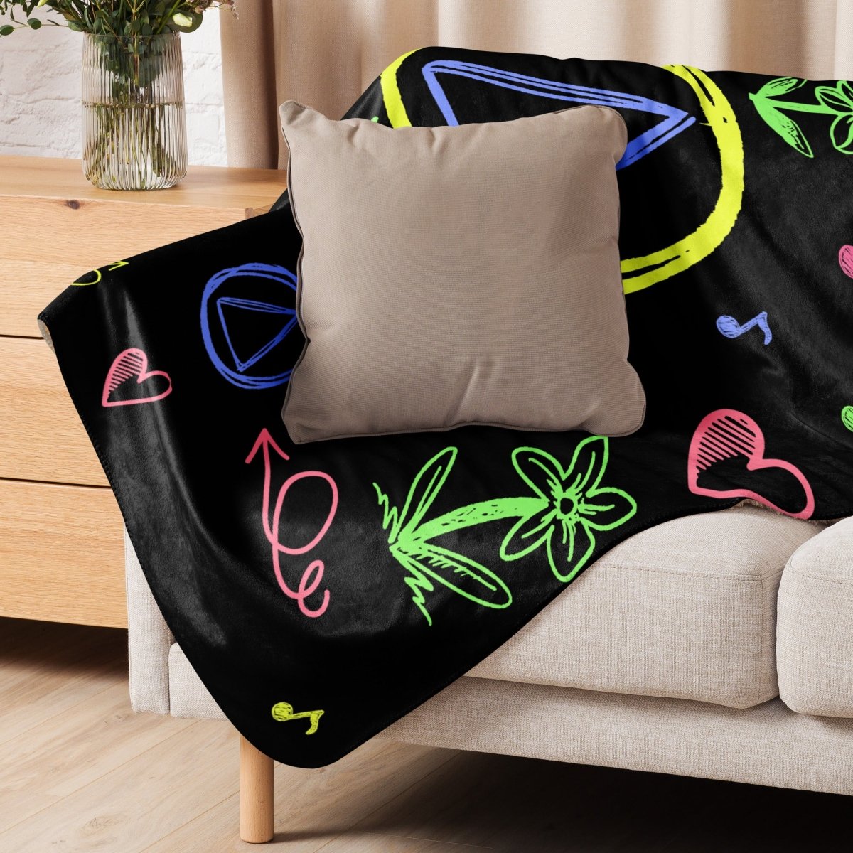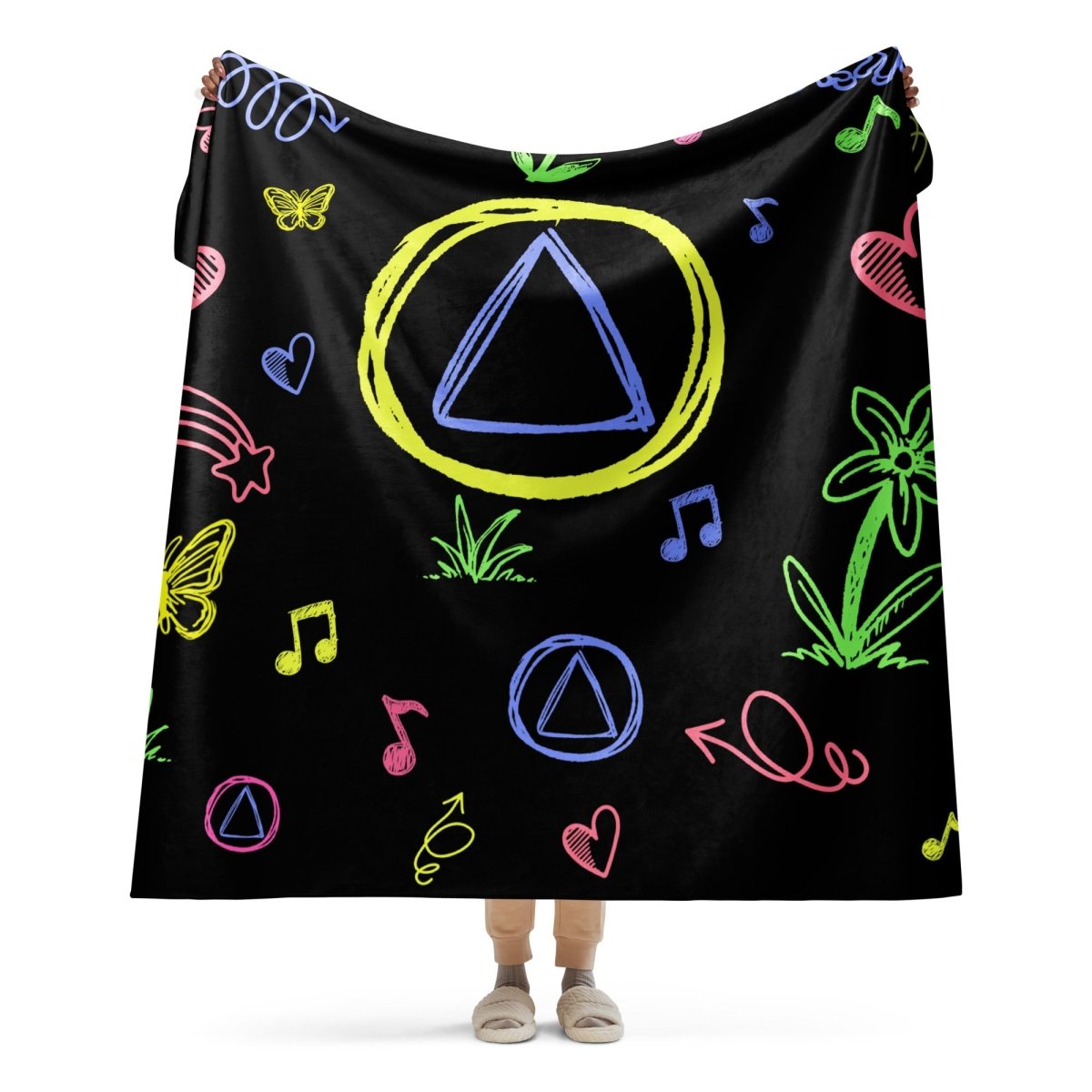 Sobriety Colors My Life With Happiness – Doodle Art Sherpa Blanket (60″ × 80″)