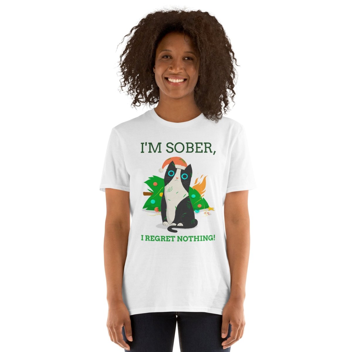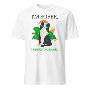 Celebrate your sobriety journey with a dash of holiday spirit and feline mischief! Our "I'm Sober, I Regret Nothing!" t-shirt features a quirky cat tangled in Christmas lights, proudly declaring a life of no regrets. Perfect for holiday gatherings or as a festive reminder of your strength, this shirt is a must-have for anyone embracing an alcohol-free lifestyle.