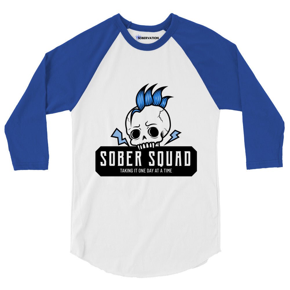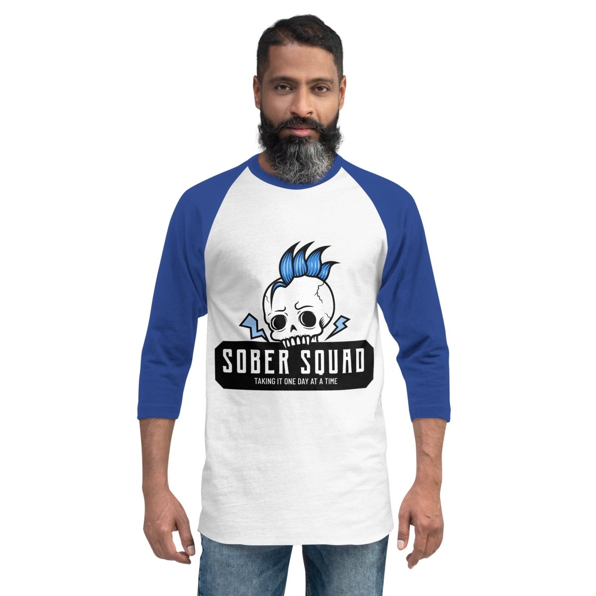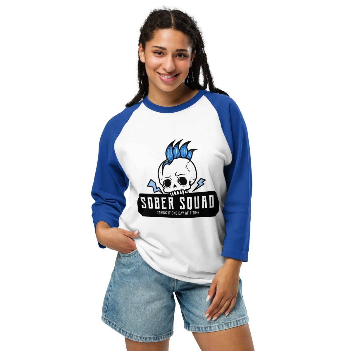 Join the Sober Squad with this stylish 3/4 Sleeve Raglan Shirt, featuring a bold skull design with a blue mohawk. This unisex shirt is perfect for anyone proud of their sobriety journey, offering both comfort and a powerful statement. Made with high-quality fabric, it's ideal for casual wear, meetings, or just showing off your commitment to taking it one day at a time.
