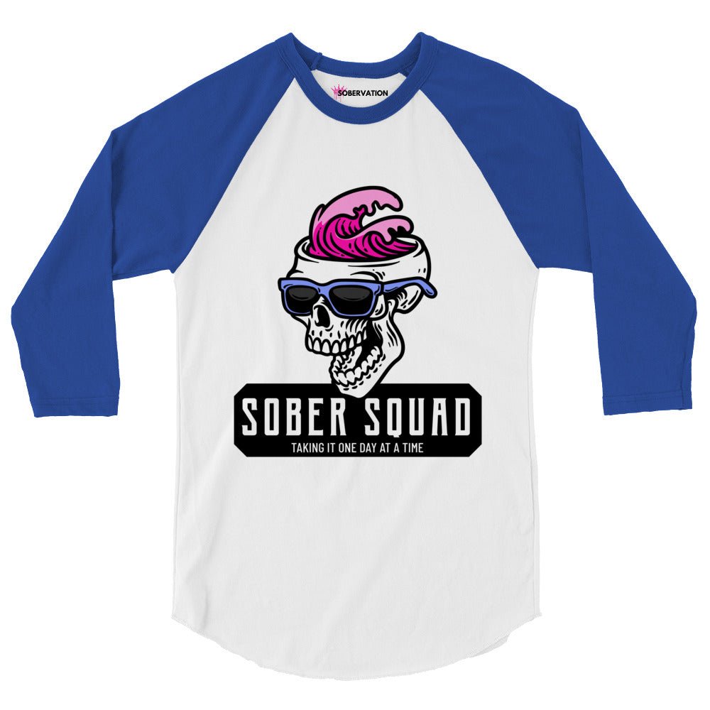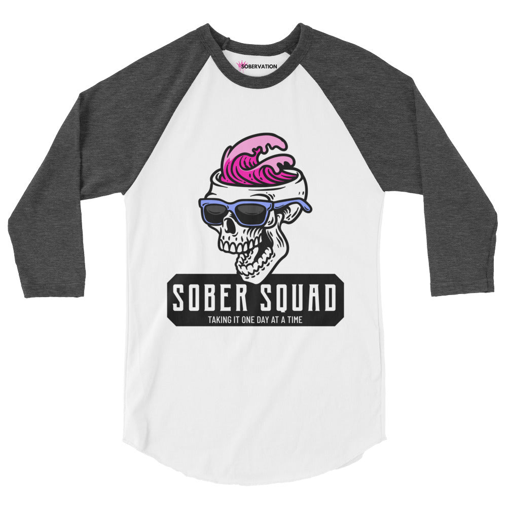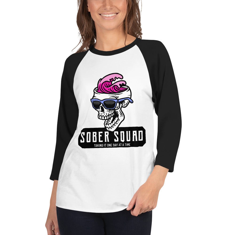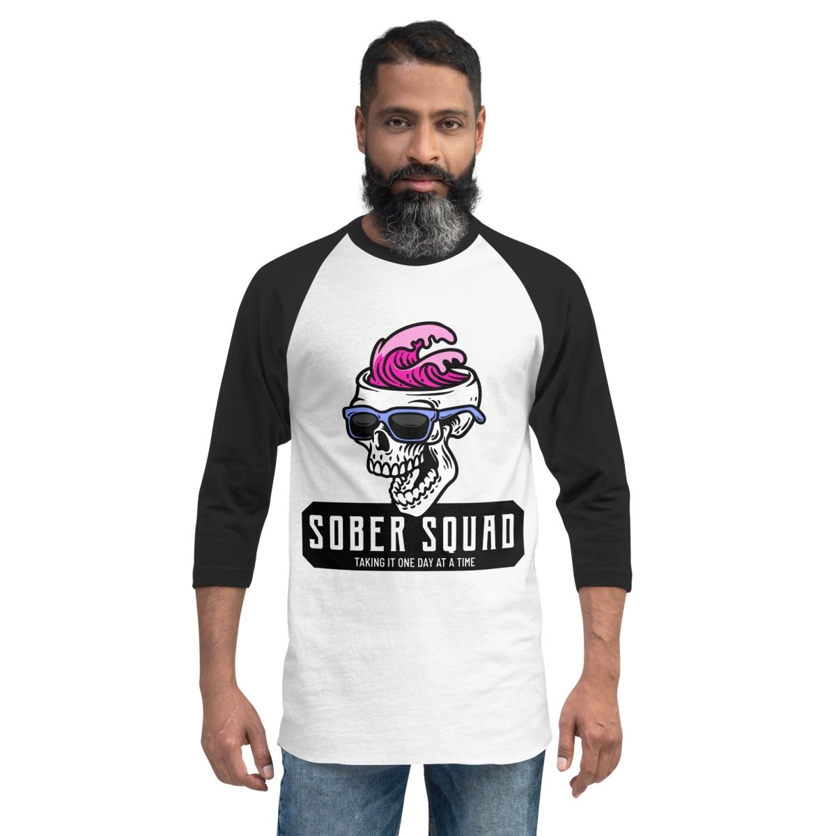 Sober Squad 3/4 Sleeve Raglan Shirt - Skull Wave Design