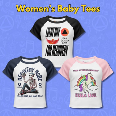 Where sporty meets sober pride — the Micro Rib Raglan Baby Tee Collection brings a fresh, fitted twist to recovery-inspired fashion. These mid-length tees feature soft ribbed fabric, contrast raglan sleeves, and empowering Sobervation designs that celebrate confidence, humor, and strength in recovery.