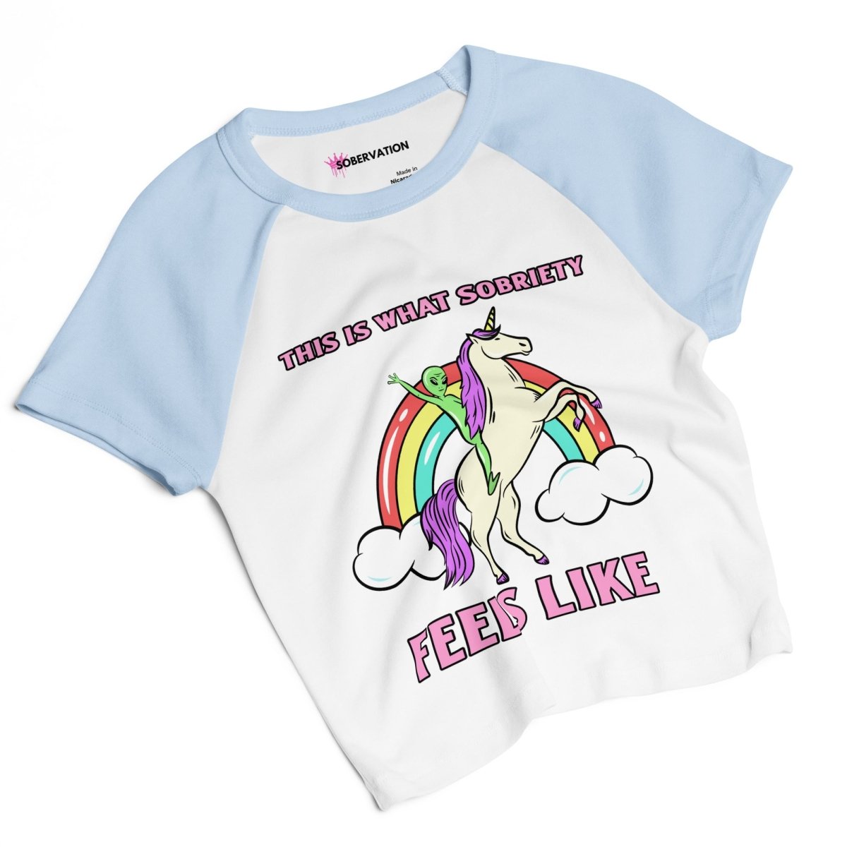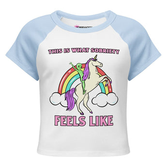 Sporty, soft, and full of Sobervation attitude — our Micro Rib Raglan Baby Tee Collection brings a playful edge to recovery fashion. Each fitted mid-length tee features contrast sleeves, a flattering ribbed texture, and empowering designs that inspire confidence and positivity.