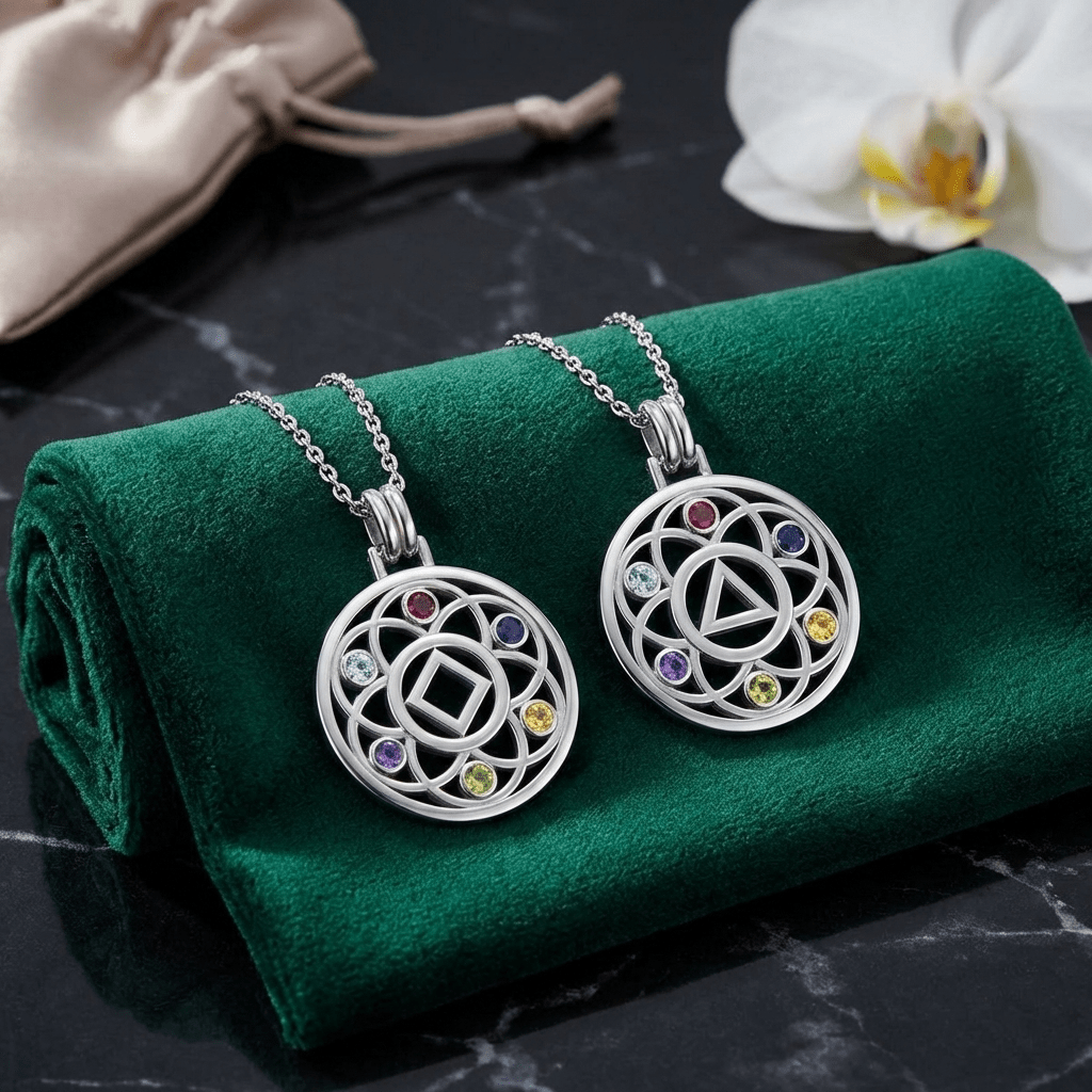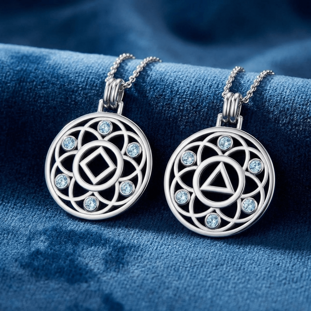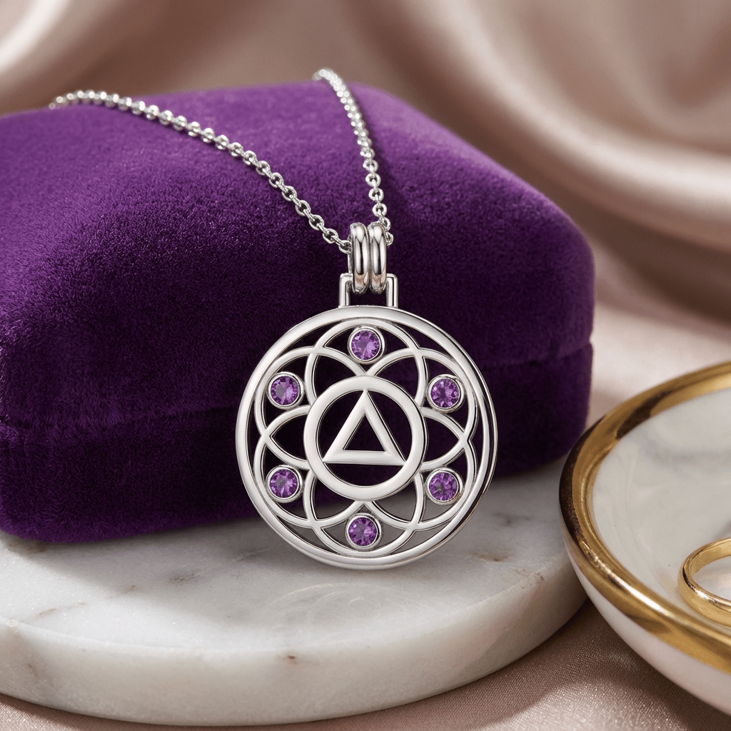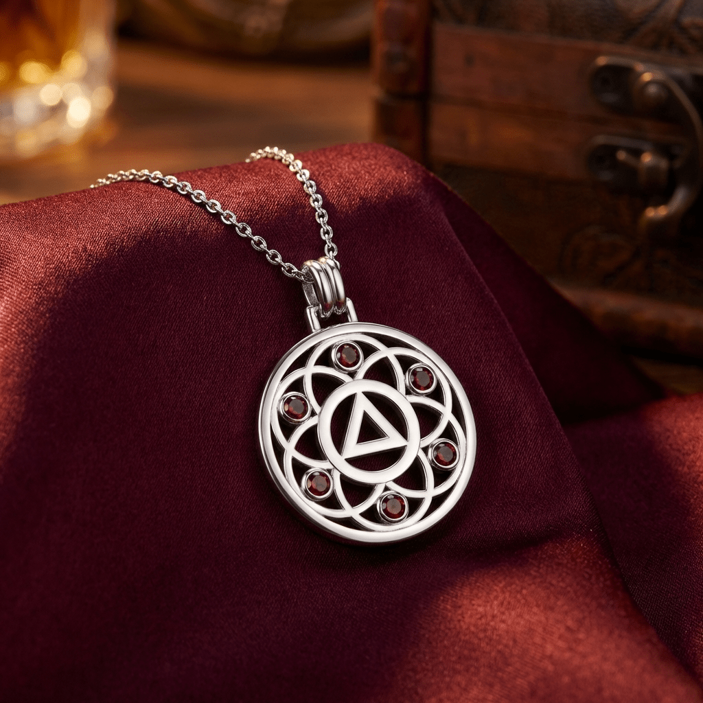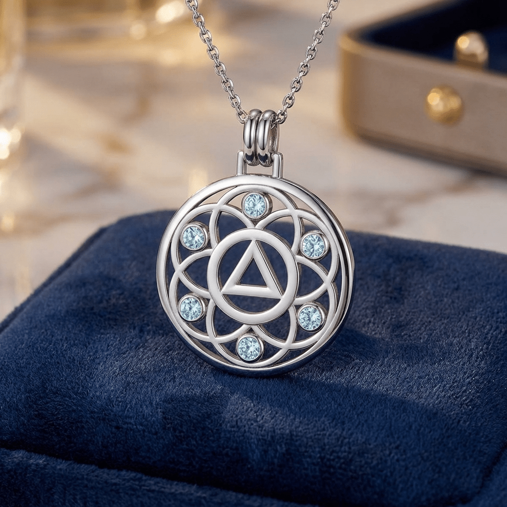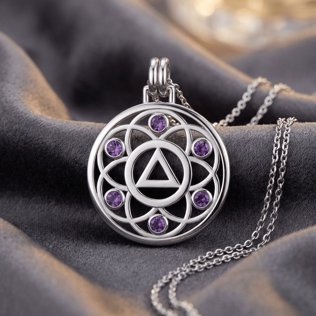 Embrace growth, transformation, and the interconnected journey of recovery with the Flower of Life Sterling Silver Recovery Pendant, available with your choice of the AA (Alcoholics Anonymous) or NA (Narcotics Anonymous) Recovery symbol.