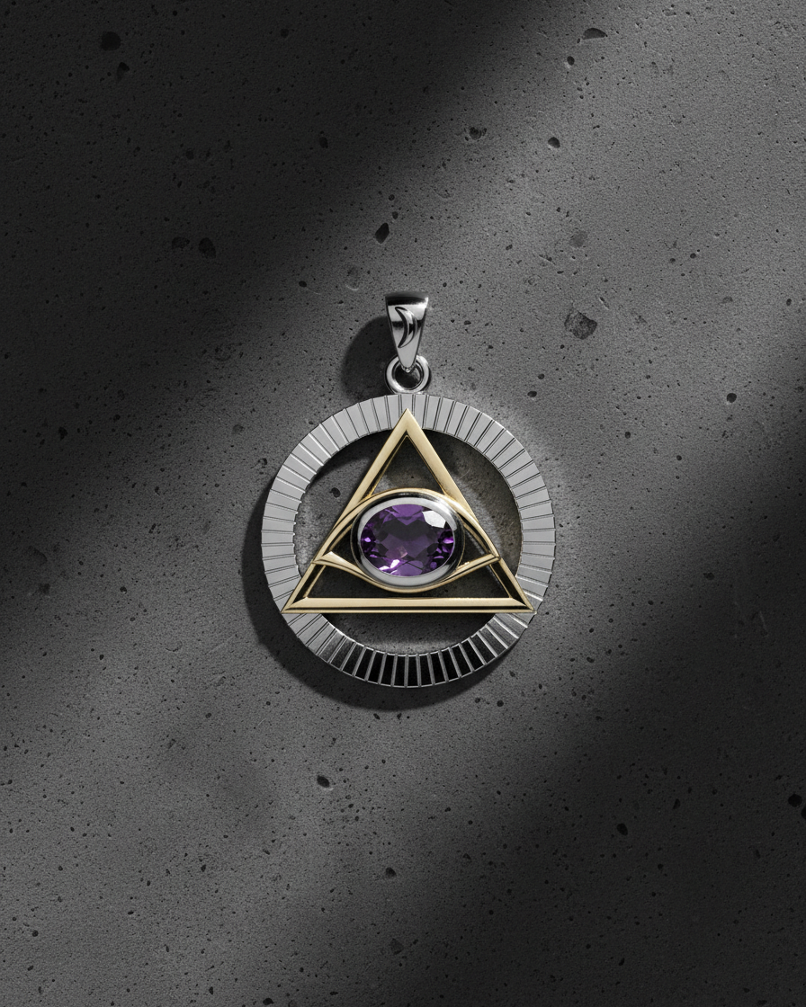 The Clarity & Strength Pyramid Pendant channels ancient wisdom and modern recovery into one powerful piece. Featuring a pyramid design with the all-seeing eye sobriety symbol and your choice of gemstone, this sterling silver pendant with gold-plated accents celebrates enlightenment, awareness, and the clarity that comes with living sober.