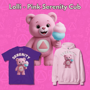 She’s your go-to cub for emotional honesty and soft strength. Whether you're facing a tough day or just learning to have fun sober, Lolli helps you reconnect with your inner child—the part of you that still believes in magic, delight, and second chances.