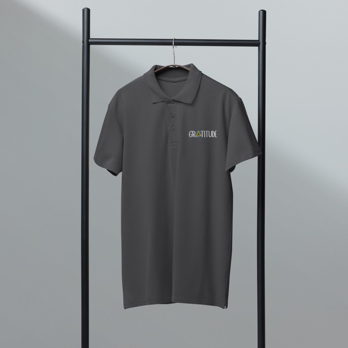 The Gratitude embroidery transforms this from basic polo to a meaningful statement piece. The graffiti sobriety symbol replacing the A adds artistic depth and visual interest that sparks conversation—whether you're wearing it to recovery meetings, casual outings, work environments that allow polos, or anywhere you want to carry your story with intention, this polo brings authenticity and purpose to your wardrobe. Pair it with chinos for elevated casual, layer it under a jacket, or wear it solo—this polo anchors any fit with thankfulness and pride.
