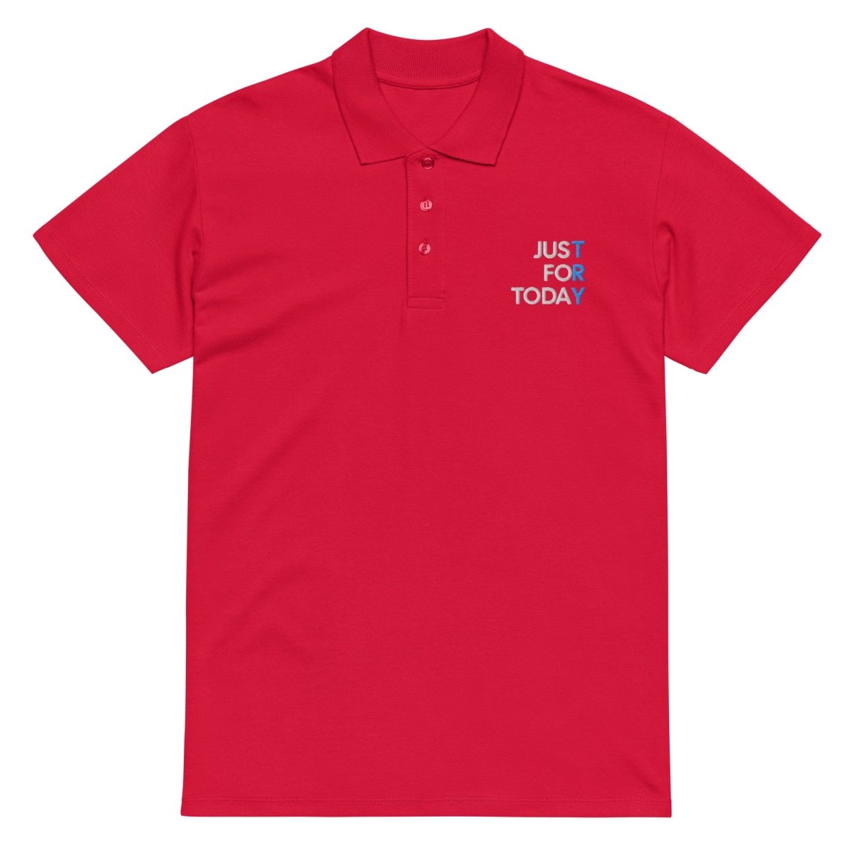 Just For Today Embroidered Premium Pique Polo Shirt - Recovery Streetwear
