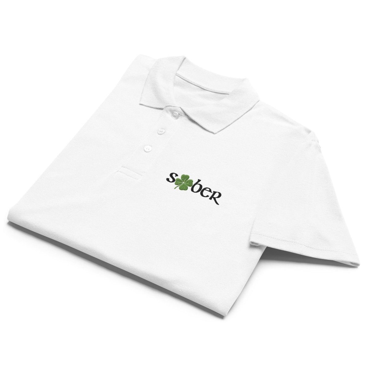 Sober Shamrock Embroidered Premium Pique Polo Shirt - Recovery Streetwear