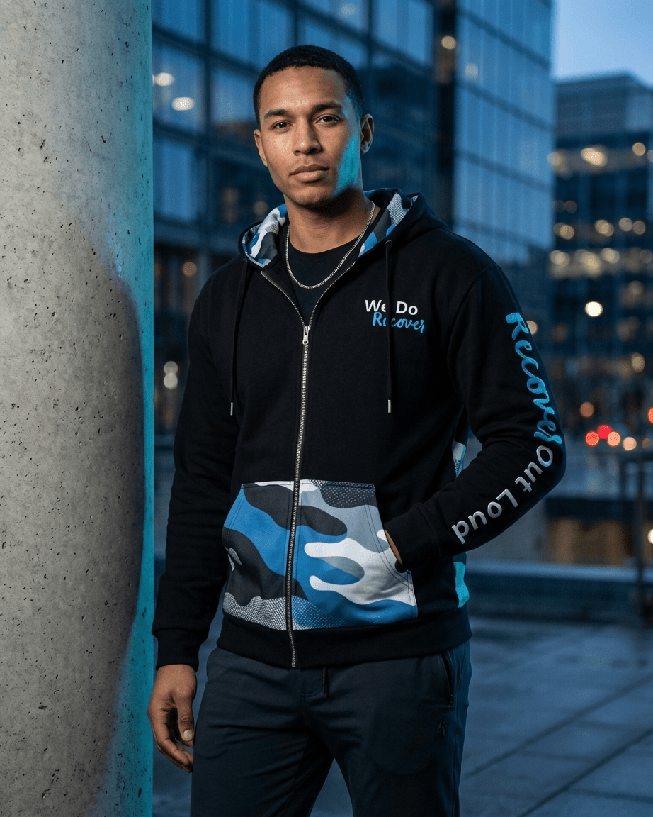 The first all-over print hoodie we ever launched — and still one of the most loved. The Recovery Champion zip hoodie blends bold design with lived-in comfort, giving you a standout look that speaks volumes without saying a word. With “We Do Recover” stamped across the back and a confident symbol of sobriety on the chest, this hoodie was built for those walking the walk. Lightweight yet substantial, it’s the perfect throw-on for meetings, chilly days, or any time you need a reminder of just how far you've come.