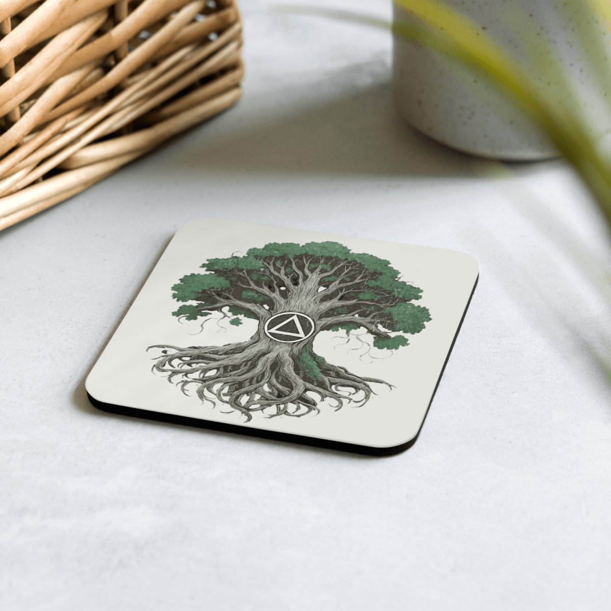 Crafted from durable cork and hardboard with a high-gloss top, this coaster protects your surfaces from spills, stains, and heat—while serving as a quiet daily affirmation of how far you’ve come.