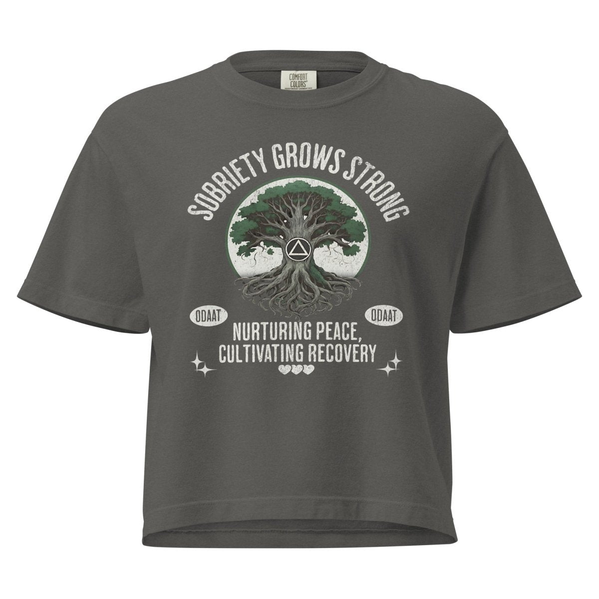 Whether you're planting new roots or celebrating how far you’ve come, this tee keeps your recovery story close to your heart—and right out front.