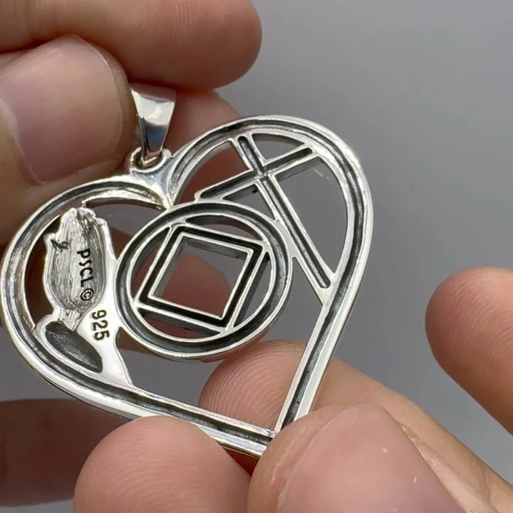 A heart with the AA or NA symbol and a Christogram. Three powerful symbols combined into one meaningful piece. The heart represents self-love, the love you've found in recovery, the love of your support system, the love that keeps you going. The AA or NA symbol represents your program, your fellowship, your commitment to sobriety. The Christogram represents your faith, your higher power, your spiritual foundation in recovery. Together, they create a pendant that speaks to the heart of faith-based recovery—that sobriety is an act of love, that faith is your foundation, that choosing yourself is choosing God's plan for you. The sterling silver construction ensures this piece lasts as long as your commitment to sobriety and faith. The adjustable chain means it fits perfectly, sits exactly where you want it, close to your heart.