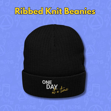 Soft, stretchy, and sustainably made—our ribbed knit beanies are all about comfort with meaning. Made from a recycled poly blend and stitched with sober-centered messages, these hats are ready for chilly mornings, mindful moments, and everything in between.