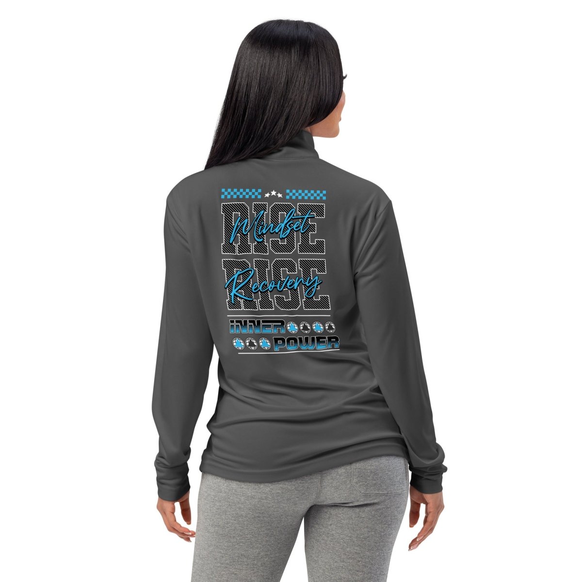 Unlock your Inner Power in the Rise Mindset Quarter-Zip Pullover—a lightweight layer made for movement and motivation. With the Sobriety Symbol globe on the front chest and the full RISE MINDSET graphic boldly printed on the back, this pullover carries the message of clarity, resilience, and elevation.