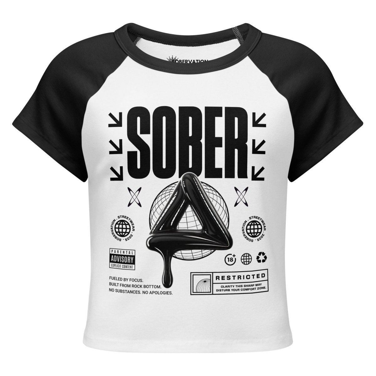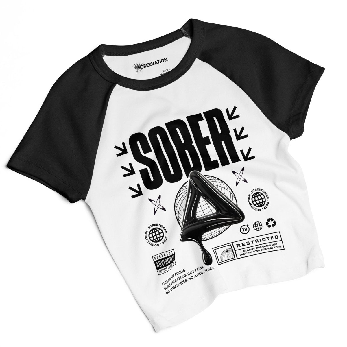 Sober Black Label Women’s Micro Rib Raglan Baby Tee – Bold, Minimalist Recovery Statement