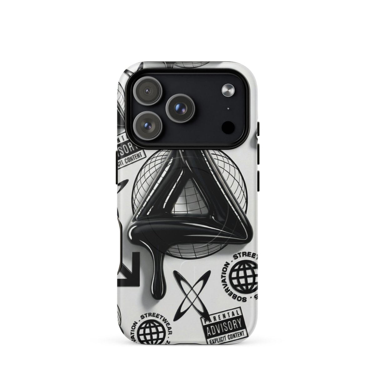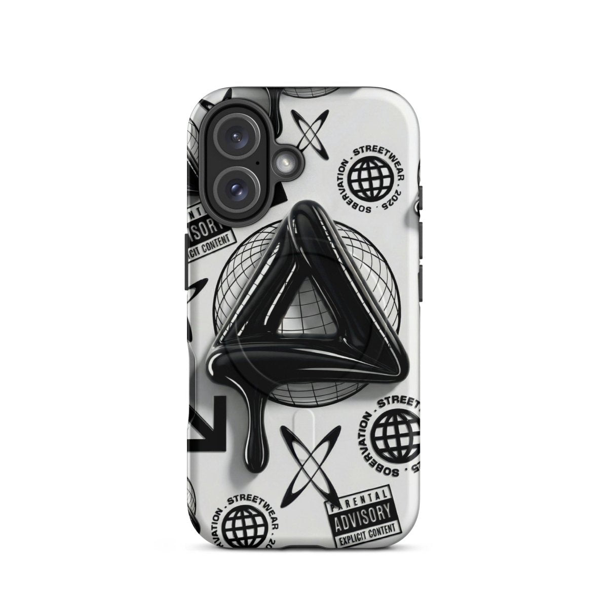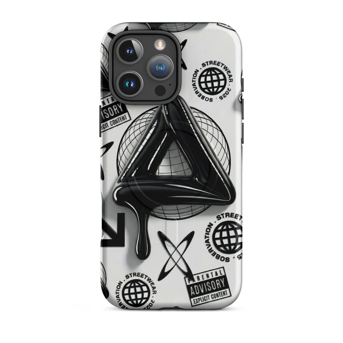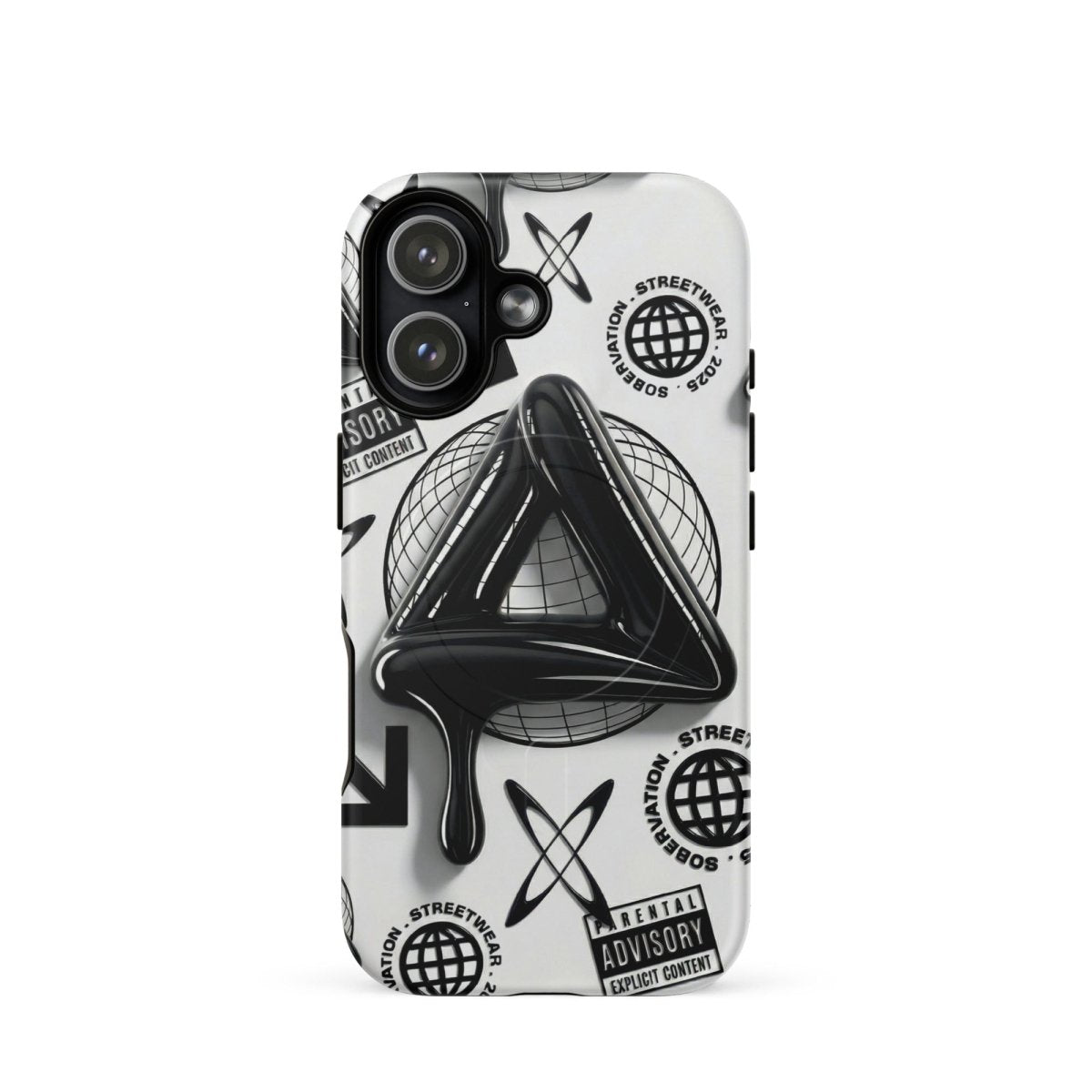 Minimalist in color but bold in message. The Sober Black Label iPhone case features a high-gloss sobriety triangle dripping in black, surrounded by gritty, graphic elements and layered symbolism. Designed for those walking the path of recovery with style, discretion, and edge.