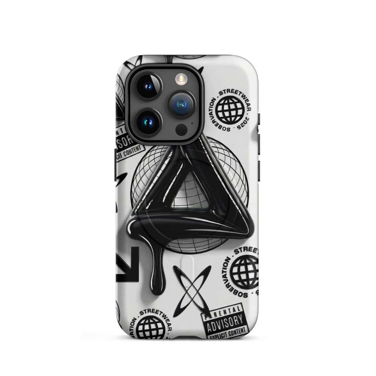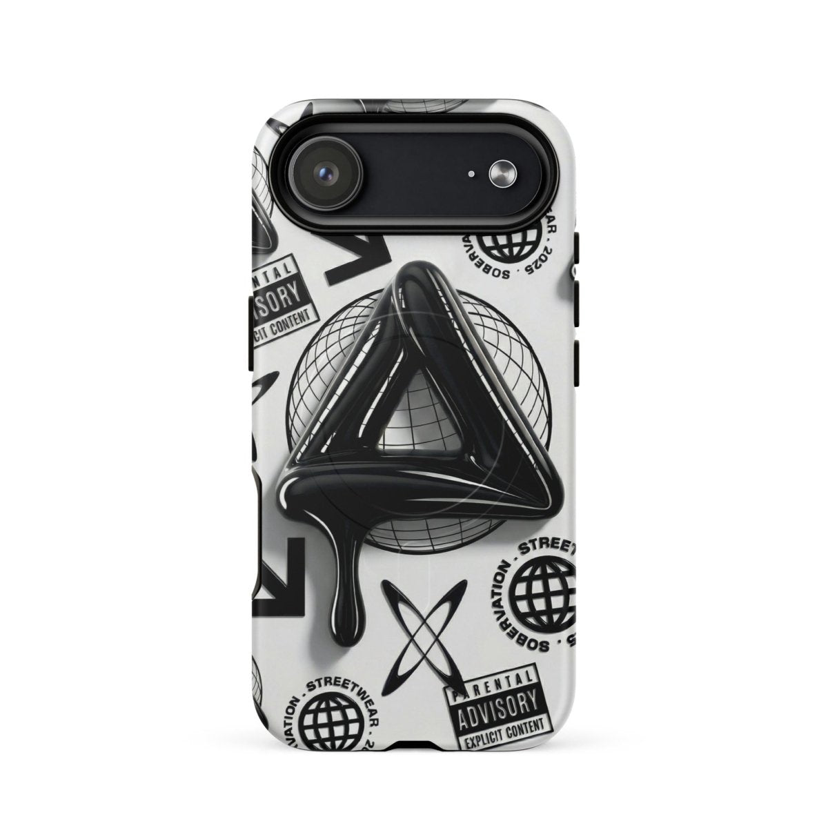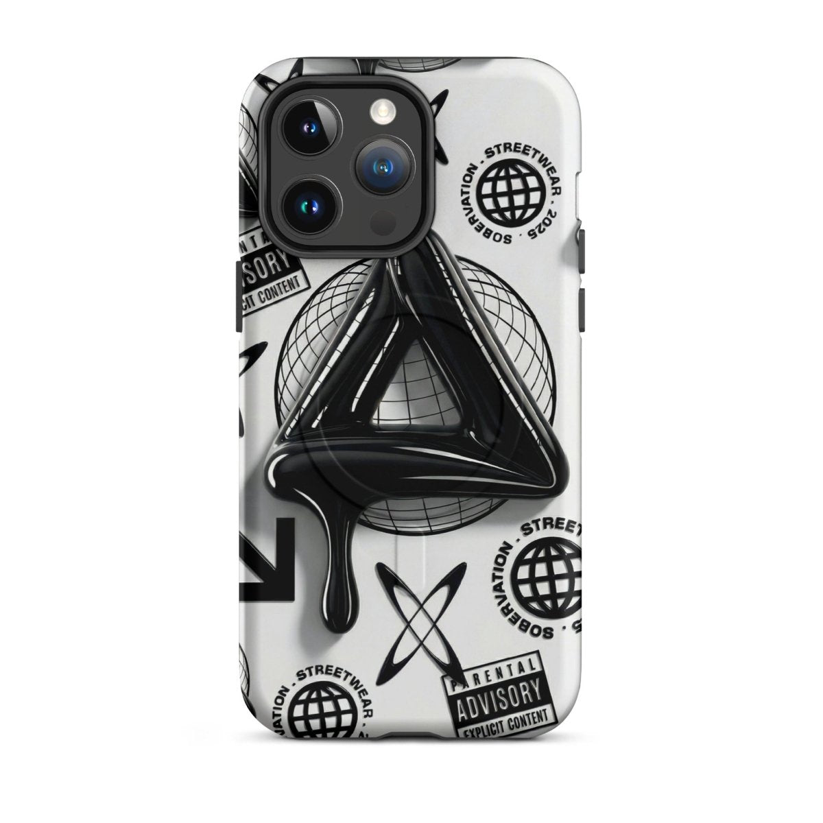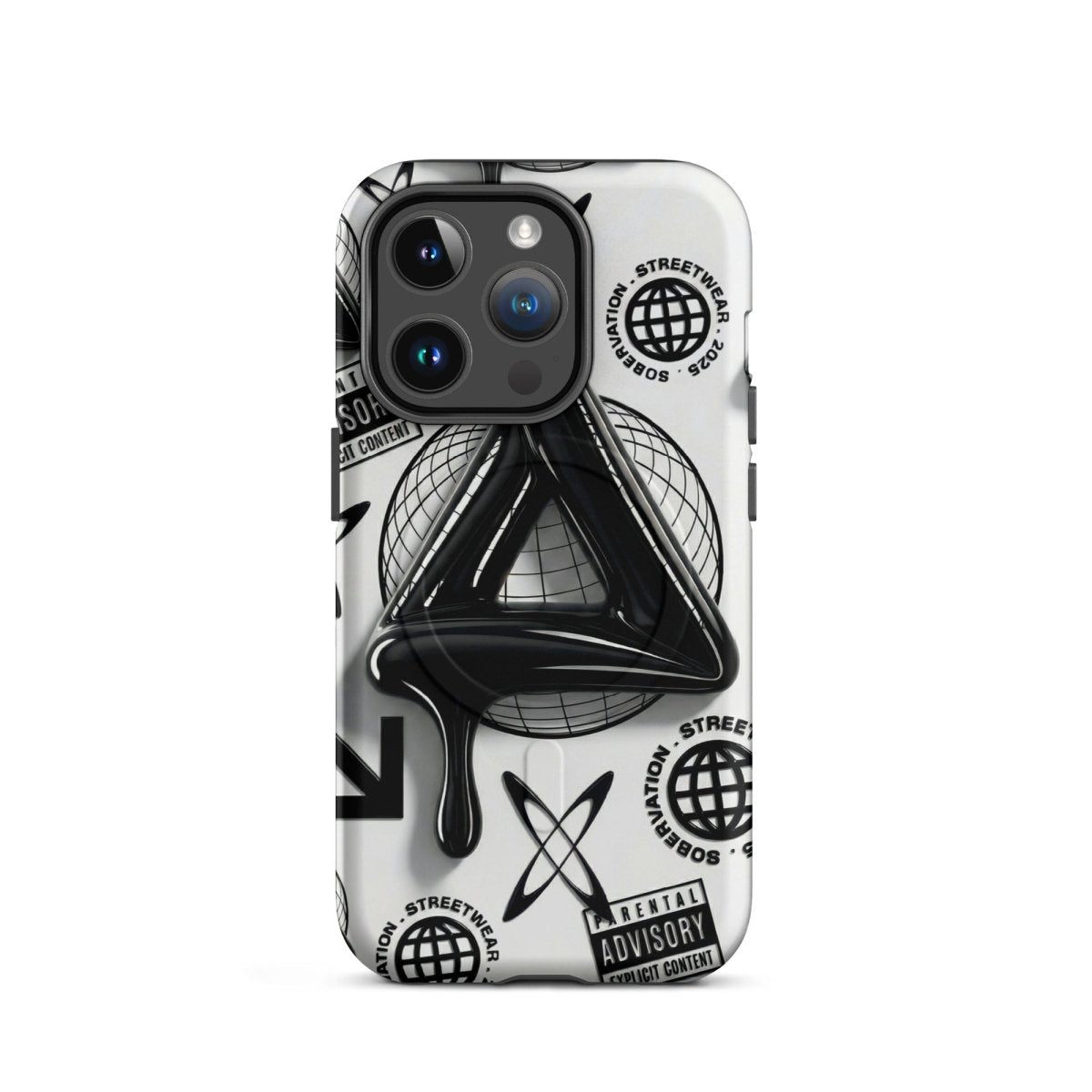 Minimalist in color but bold in message. The Sober Black Label iPhone case features a high-gloss sobriety triangle dripping in black, surrounded by gritty, graphic elements and layered symbolism. Designed for those walking the path of recovery with style, discretion, and edge.