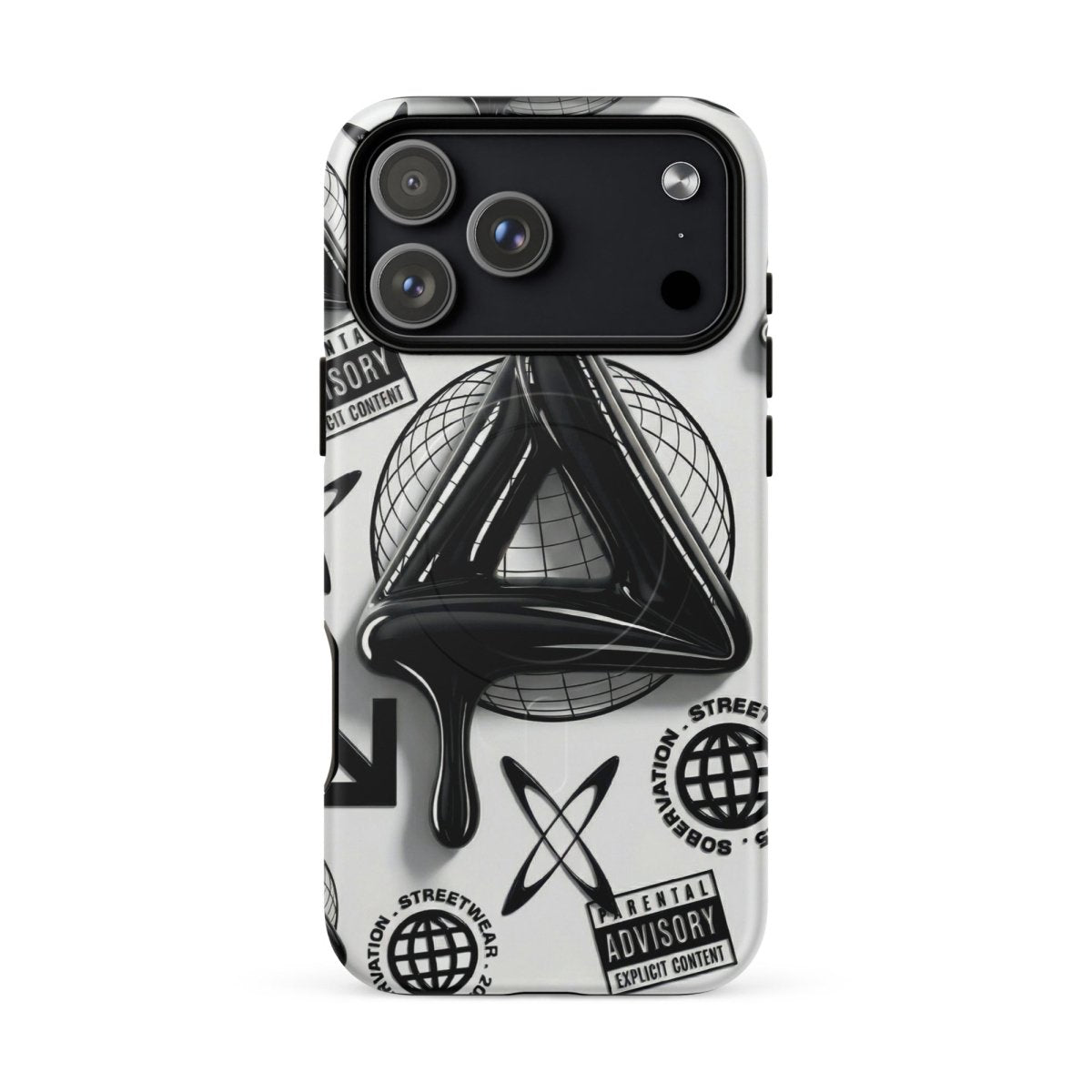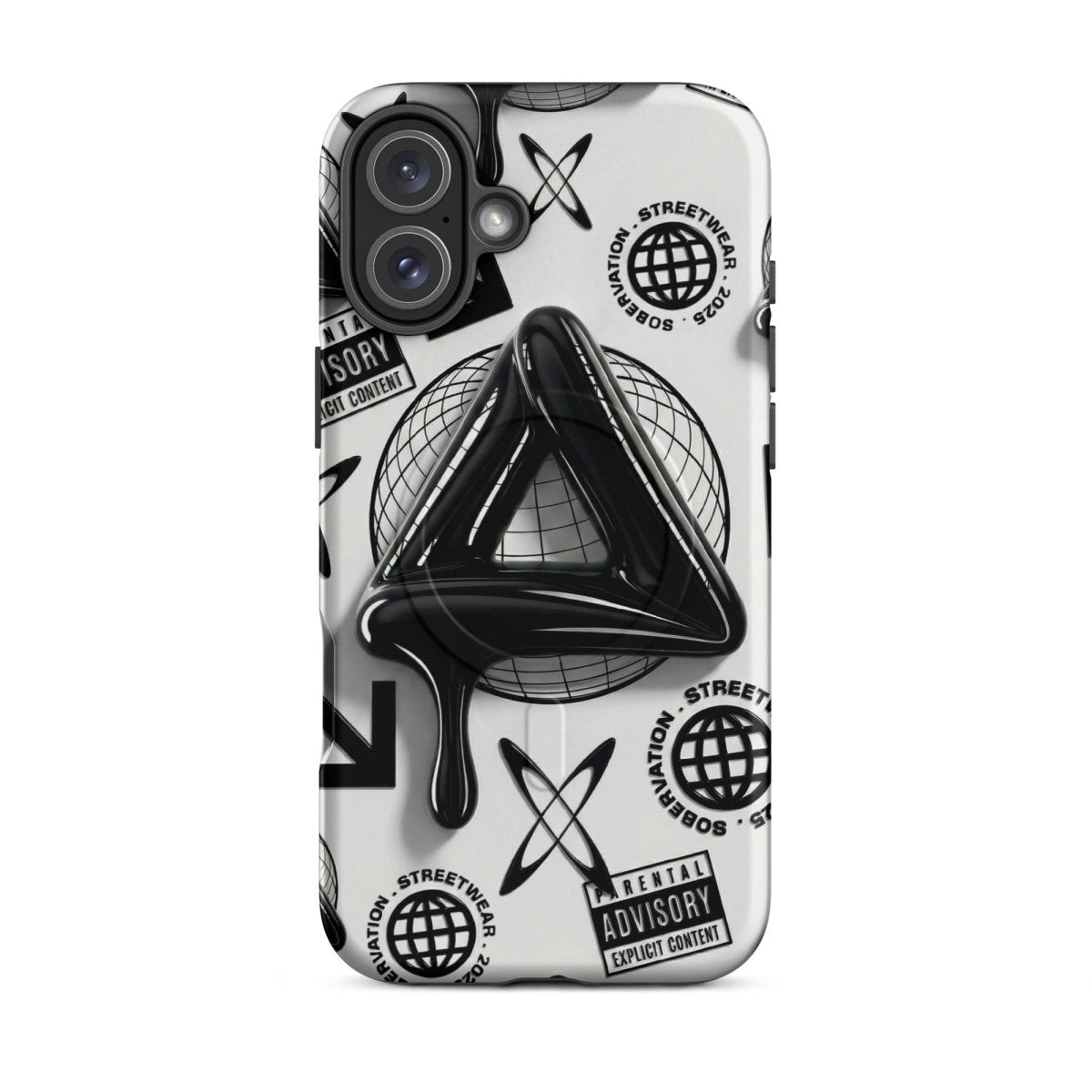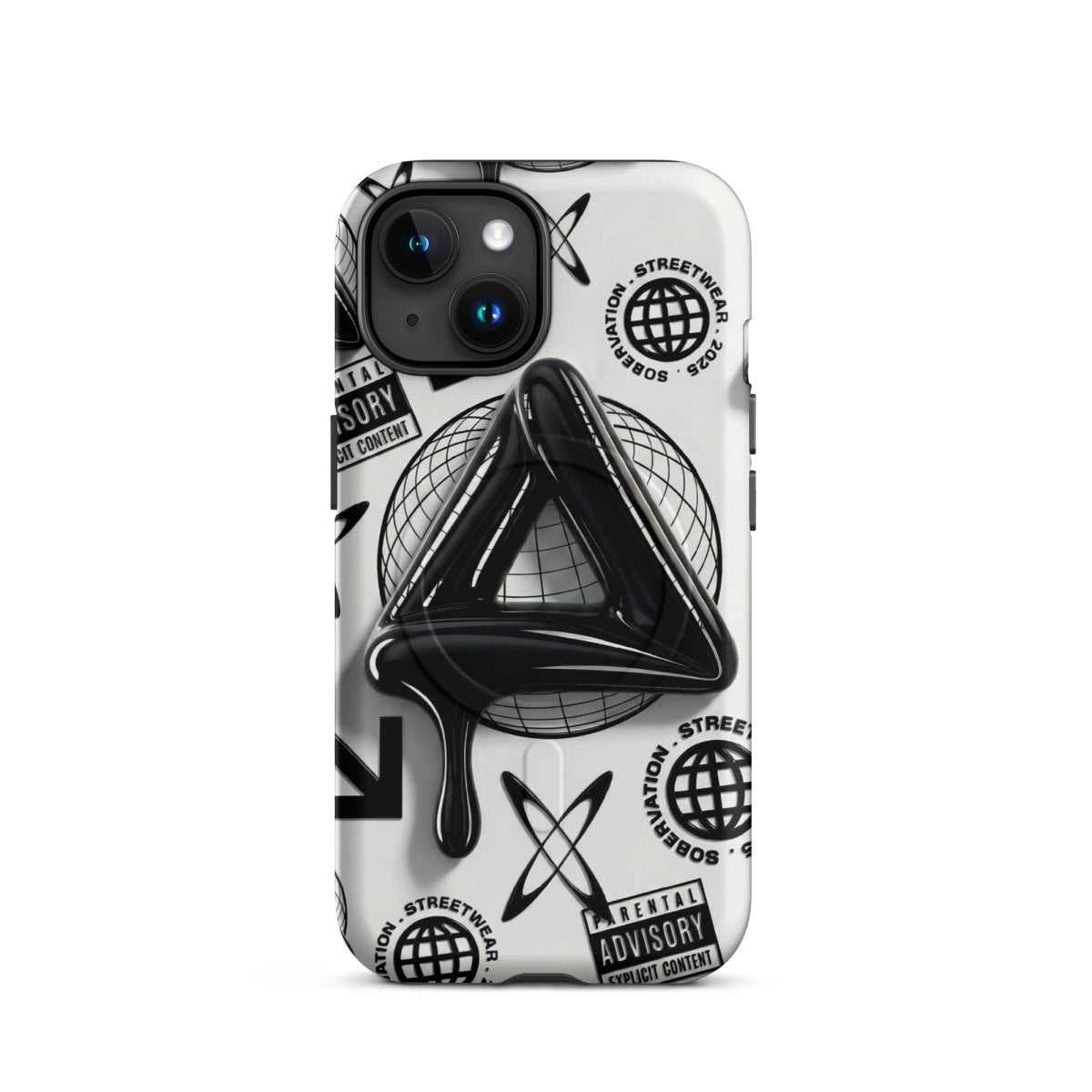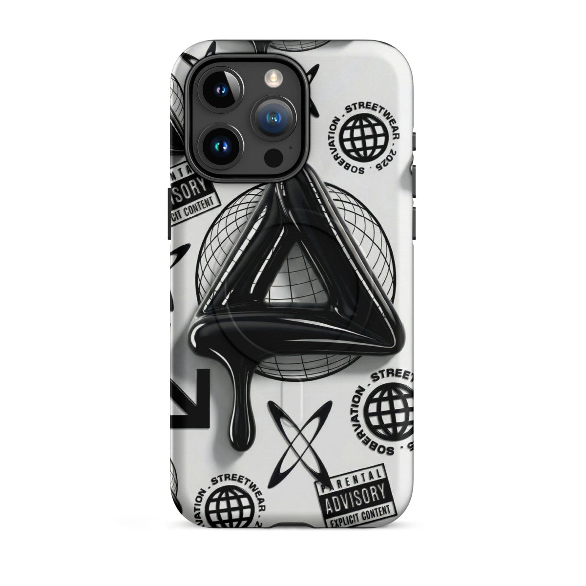 Minimalist in color but bold in message. The Sober Black Label iPhone case features a high-gloss sobriety triangle dripping in black, surrounded by gritty, graphic elements and layered symbolism. Designed for those walking the path of recovery with style, discretion, and edge.