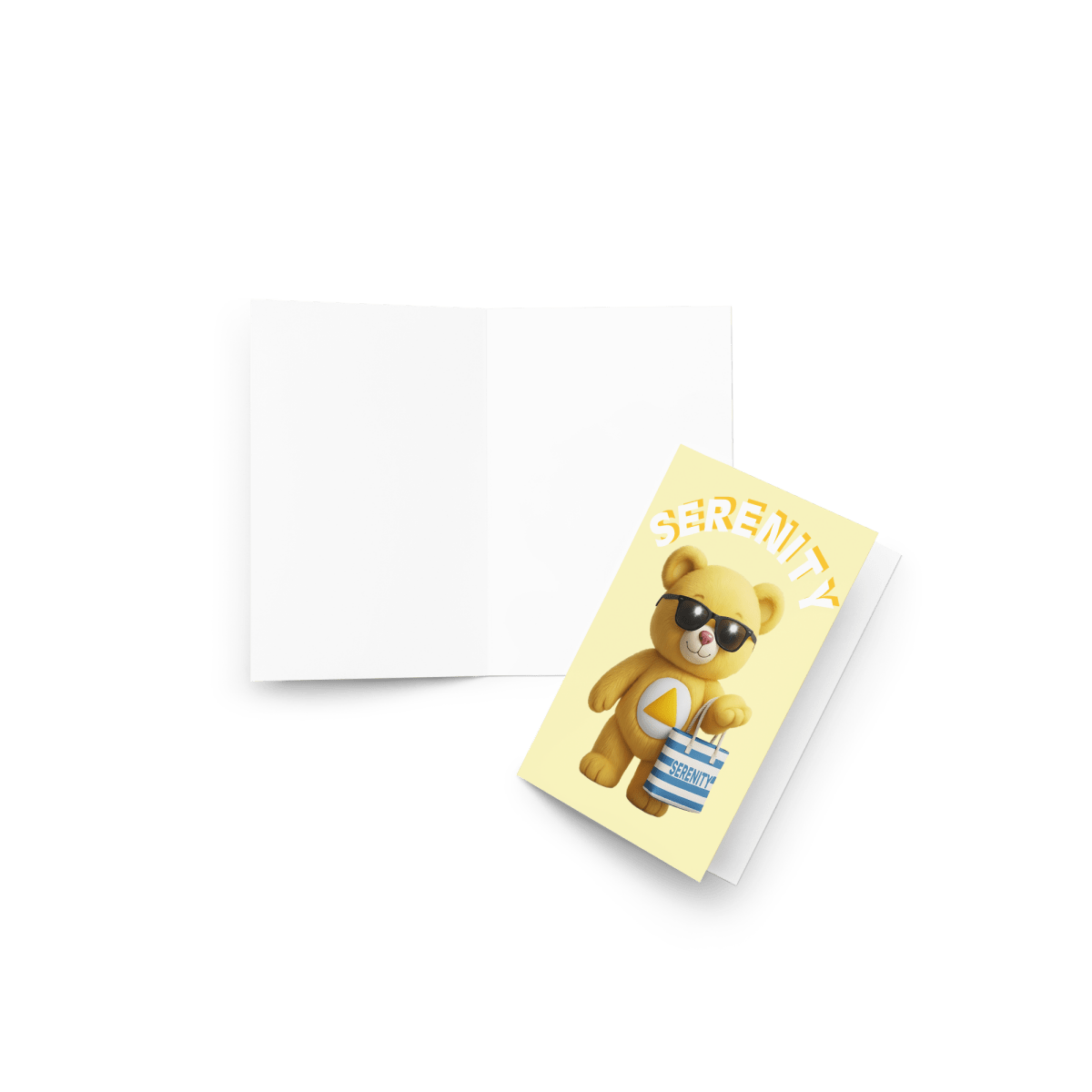 Nothing says recovery like a little sunshine. This 4" × 6" greeting card featuring Sunny the Optimism Cub brings a cheerful beach vibe to any message of encouragement or celebration. Blank inside (unless otherwise pictured) for writing from the heart.
