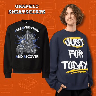From cozy fleece sweatshirts to bold graphic hoodies, subtle embroidery to sleek zip-ups, every collection is designed to carry your story with comfort and strength. Explore every style—crop cuts, oversized fits, classic pullovers, and more—and discover the hoodie or sweatshirt that reflects your recovery journey best.
