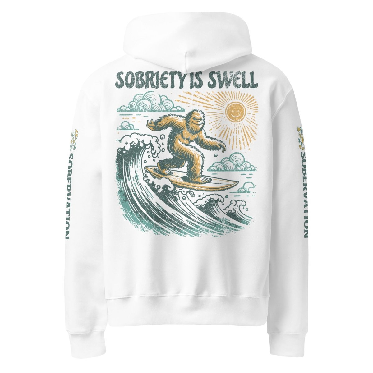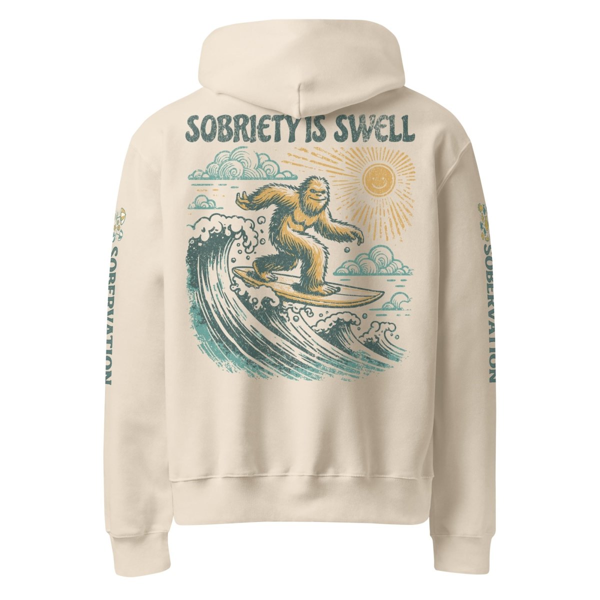 Sobriety Is Swell Oversized Hoodie – Back Print Beach Vibes, Front Symbol Strength