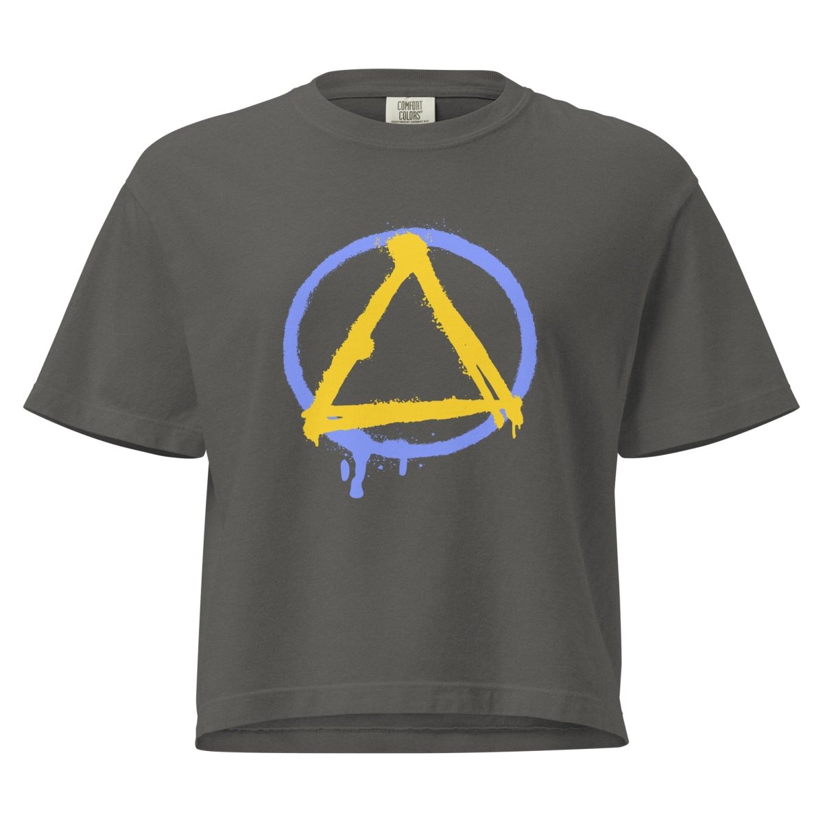 This Women’s Heavyweight Boxy Tee features a street-art-inspired graffiti take on the sobriety triangle symbol – a fearless expression of recovery and strength. The relaxed, cropped silhouette offers a modern edge while the garment-dyed, 100% ring-spun cotton delivers an ultra-soft, broken-in feel from day one.