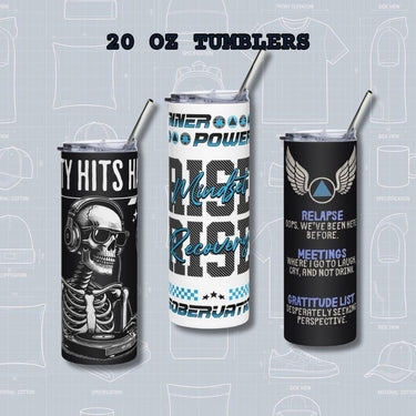 Whether you're at a meeting, heading to work, or hitting the gym, these tumblers keep you fueled and focused while carrying your message. Each design celebrates your commitment to recovery with every sip.