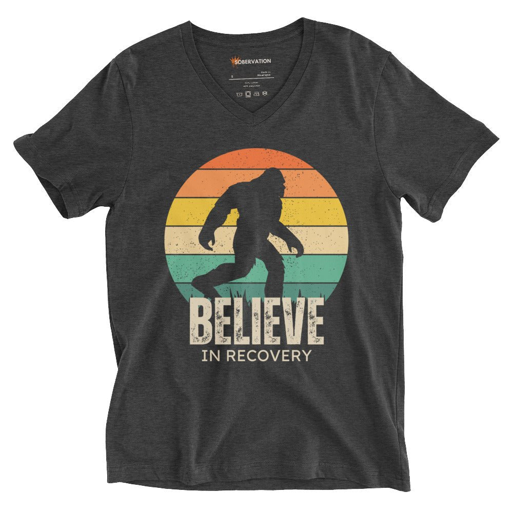 Believe in Recovery V - Neck Tee – Strength in Every Step - Dark Grey Heather V - Neck Tee - Sobervation