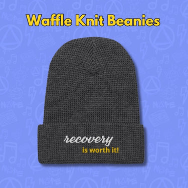 Textured, breathable, and recovery-forward—our waffle knit beanies are made for those who walk their talk. The double-layer honeycomb weave traps heat while showcasing powerful embroidered designs. Perfect for cold days and conversations that matter.