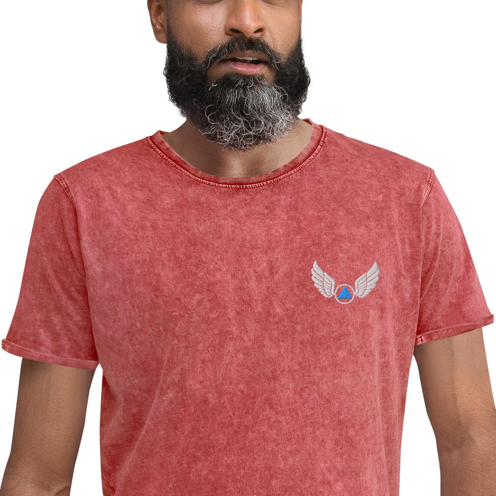 Wings of Recovery Embroidered Denim T-Shirt | Freedom in Sobriety