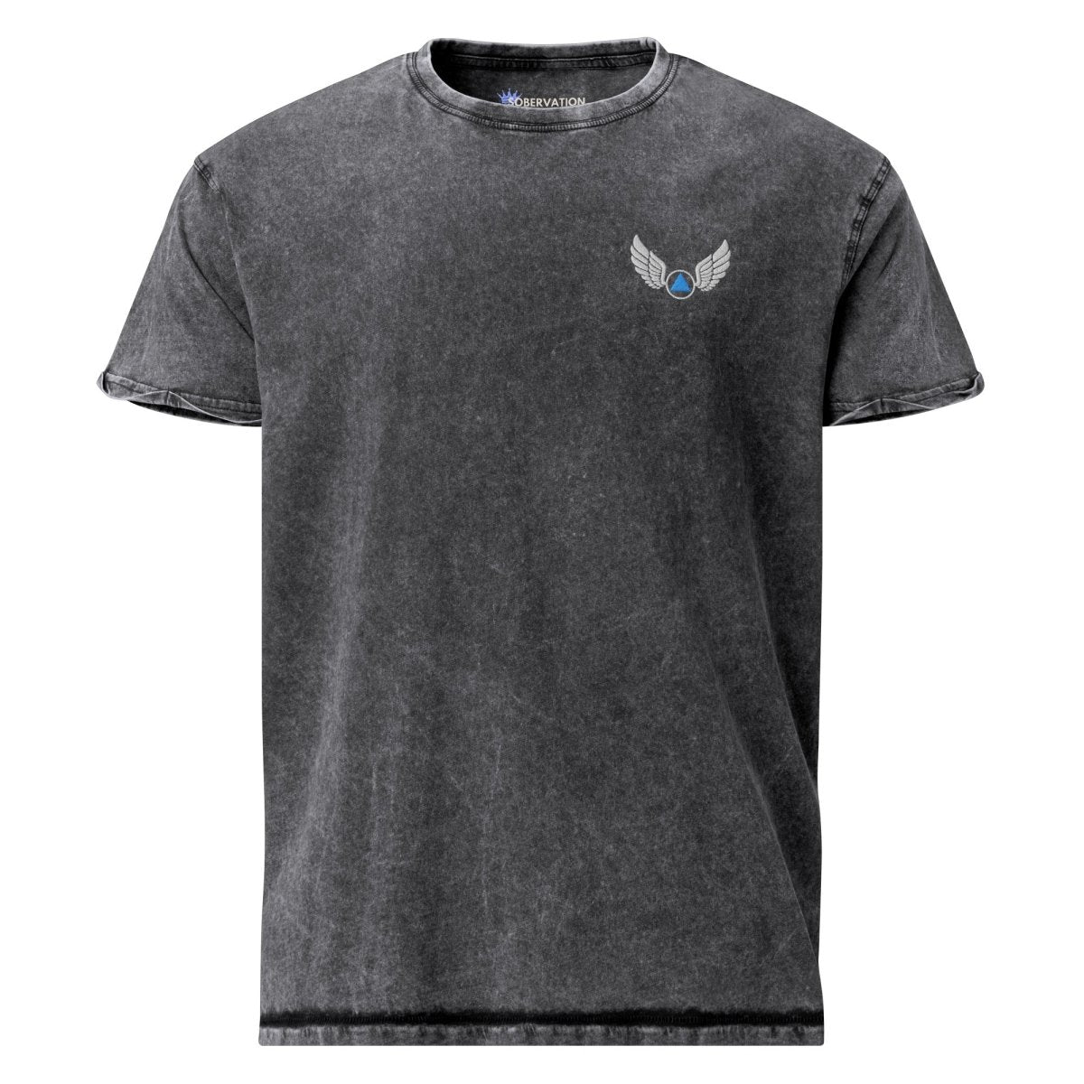 The Wings of Recovery Embroidered Denim T-Shirt is a premium recovery essential for those who've broken free from the chains of addiction. Crafted from heavyweight denim-washed cotton and finished with our signature Wings of Recovery embroidery on the left chest, this tee is a powerful symbol of transformation, flight, and the freedom that comes with sobriety.