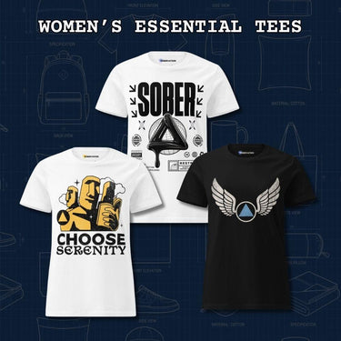 Our women’s collections celebrate every side of recovery — the bold, the soft, and everything in between. From empowering tees to comfy tanks and cozy hoodies, each piece is designed to help you feel confident, connected, and completely yourself. Whether you’re embracing calm, chasing goals, or simply living free, this is where strength meets style — one sober statement at a time.