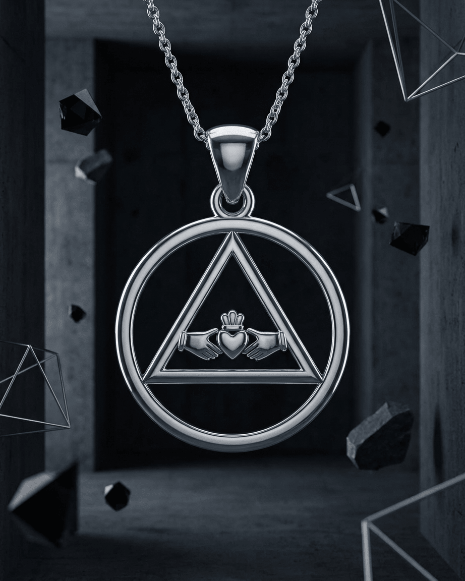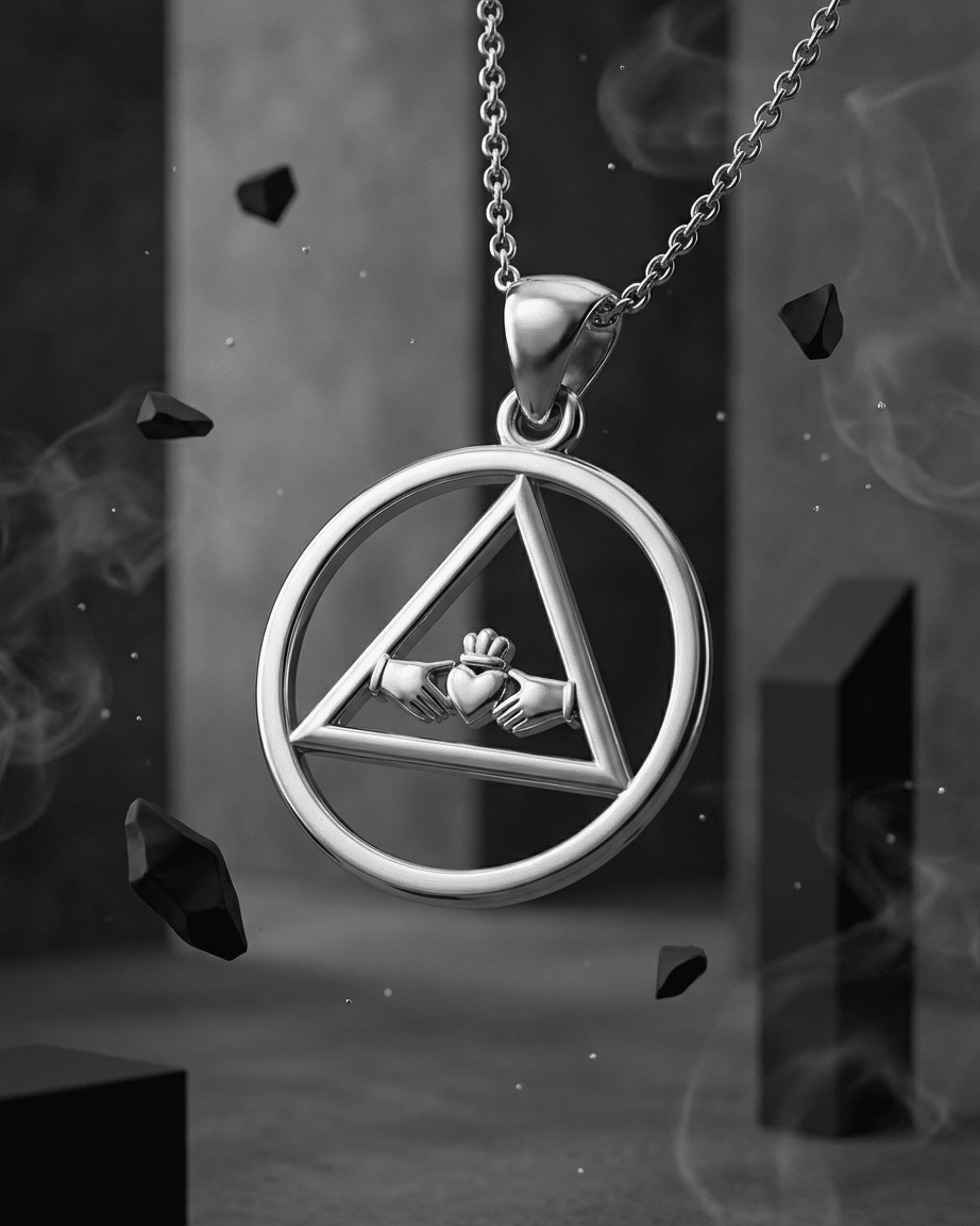 The Claddagh is one of Ireland's most beloved symbols, representing love (the heart), loyalty (the crown), and friendship (the hands). When combined with the AA triangle-and-circle symbol, this pendant becomes a powerful statement about recovery: your sobriety is built on love—love for yourself and others; loyalty—commitment to your recovery journey; and friendship—the fellowship and support that keeps you strong. The AA symbol at the heart reminds you that unity, service, and recovery are the foundation of everything. This pendant is more than jewelry—it's a wearable affirmation of the love, loyalty, and fellowship that support your recovery one day at a time.