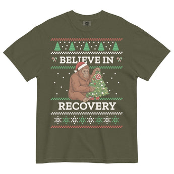Believe in Recovery - Bigfoot Ugly Christmas Heavyweight Tee
