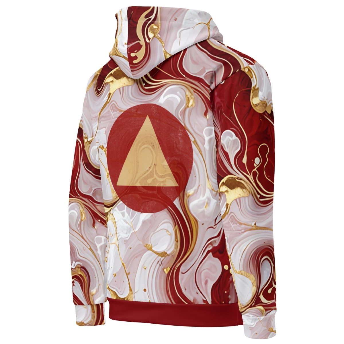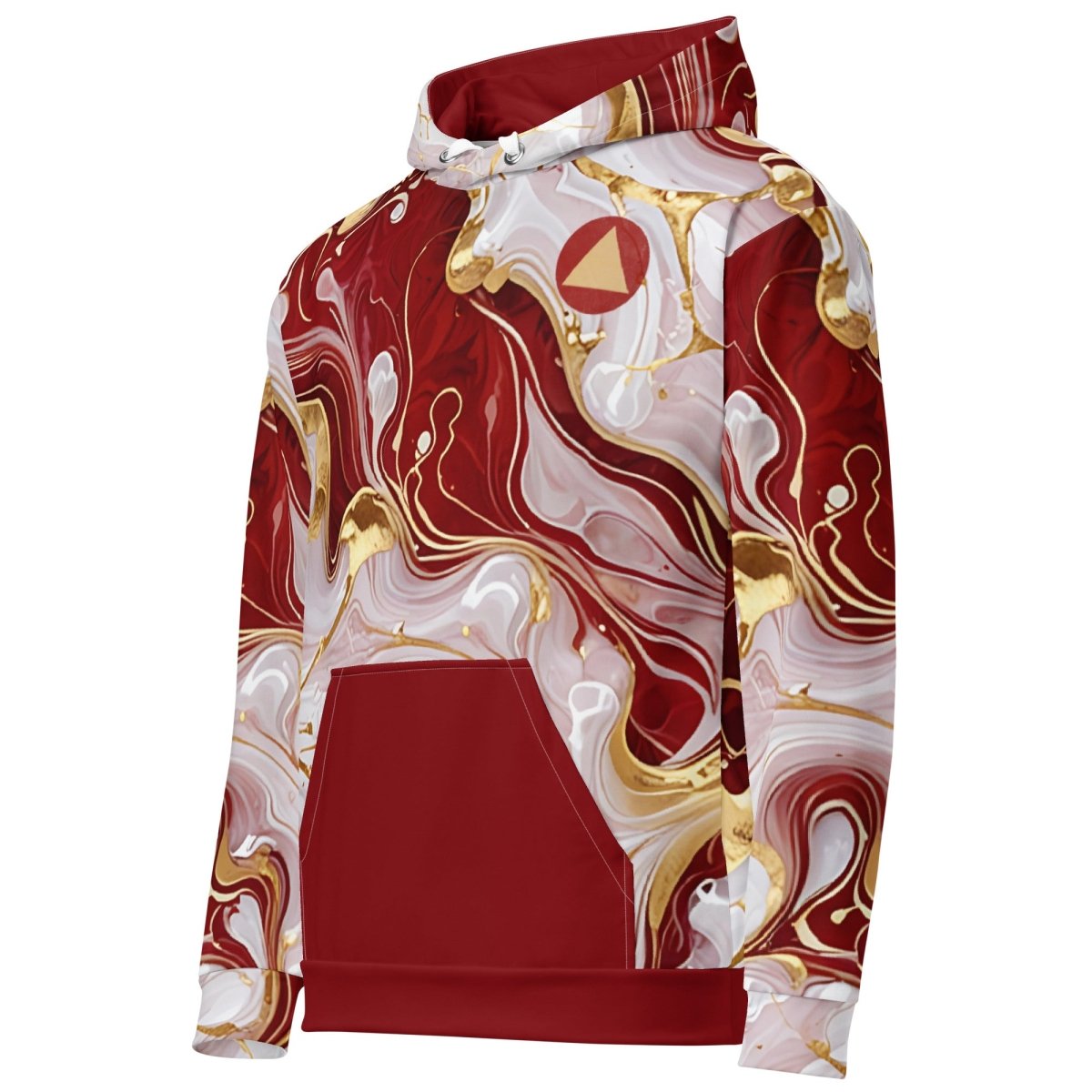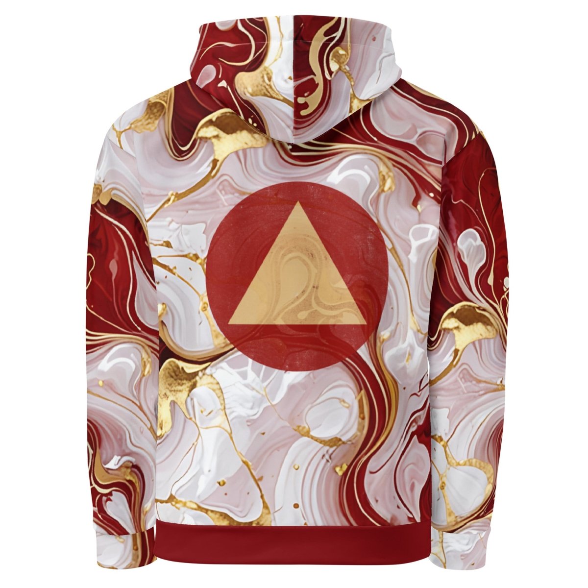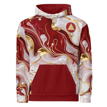 Wrap yourself in mindful comfort with the Crimson & Gold Flow Hoodie. The marbled red, white, and gold design reflects balance and renewal, while the soft cotton build and relaxed fit make it perfect for everyday wear or cool evenings.
